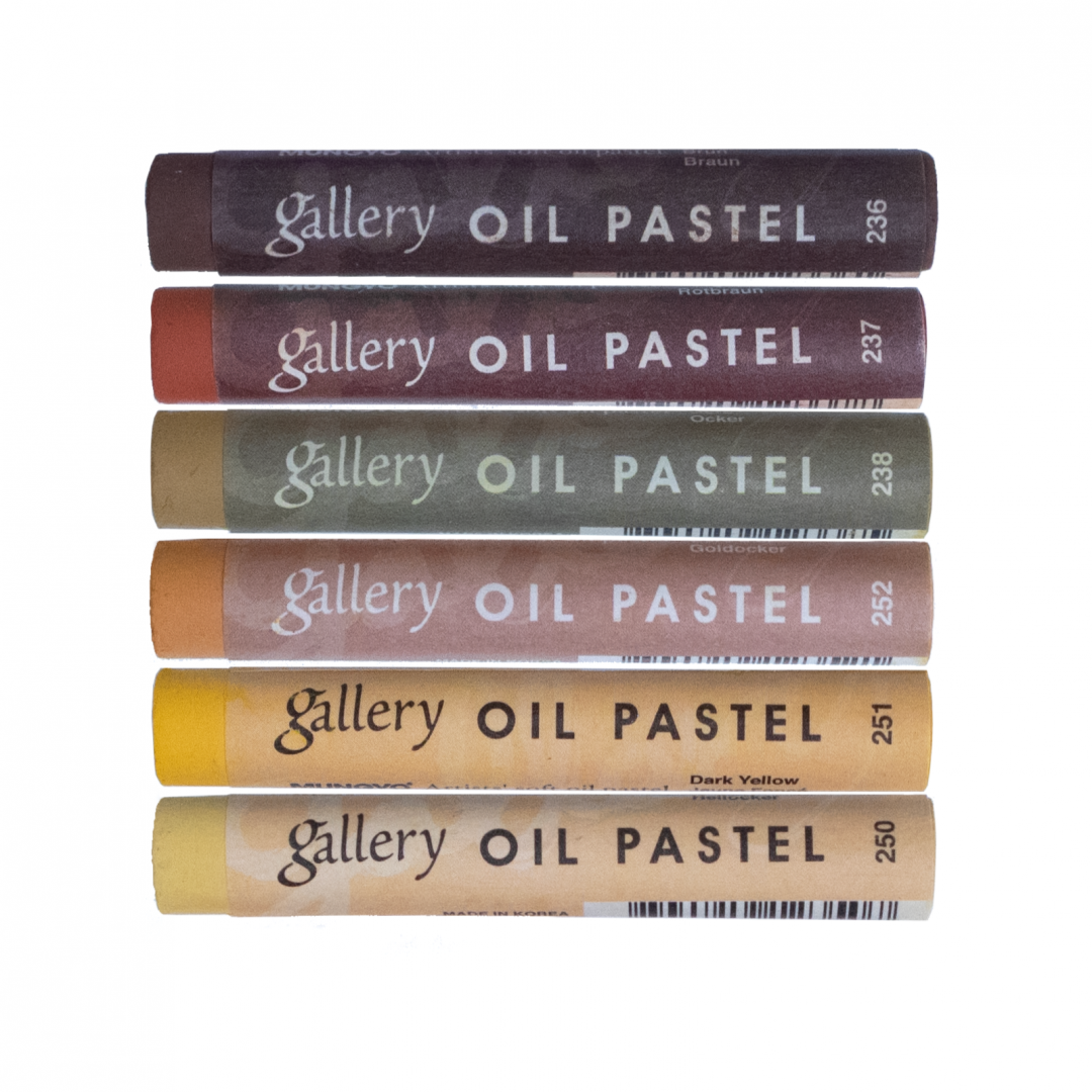 Набор из 6 круглых в сечении мелков полного размера мягкой профессиональной масляной пастели Gallery от корейского бренда Mungyo.