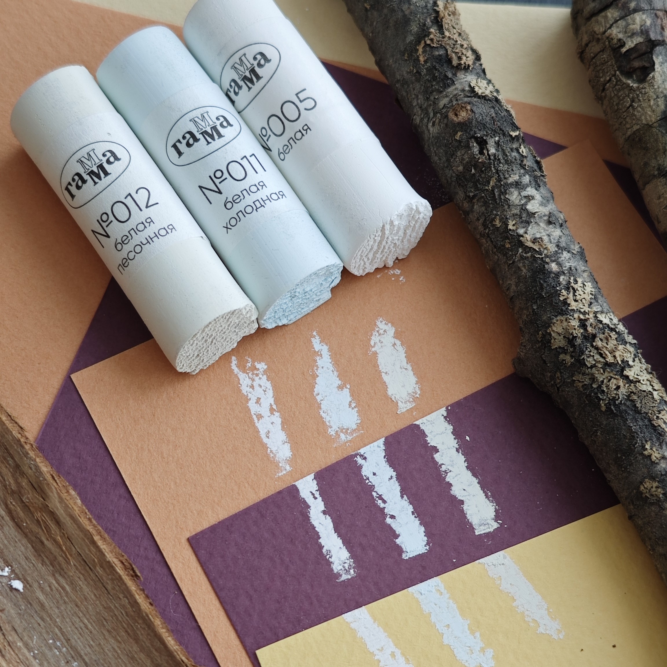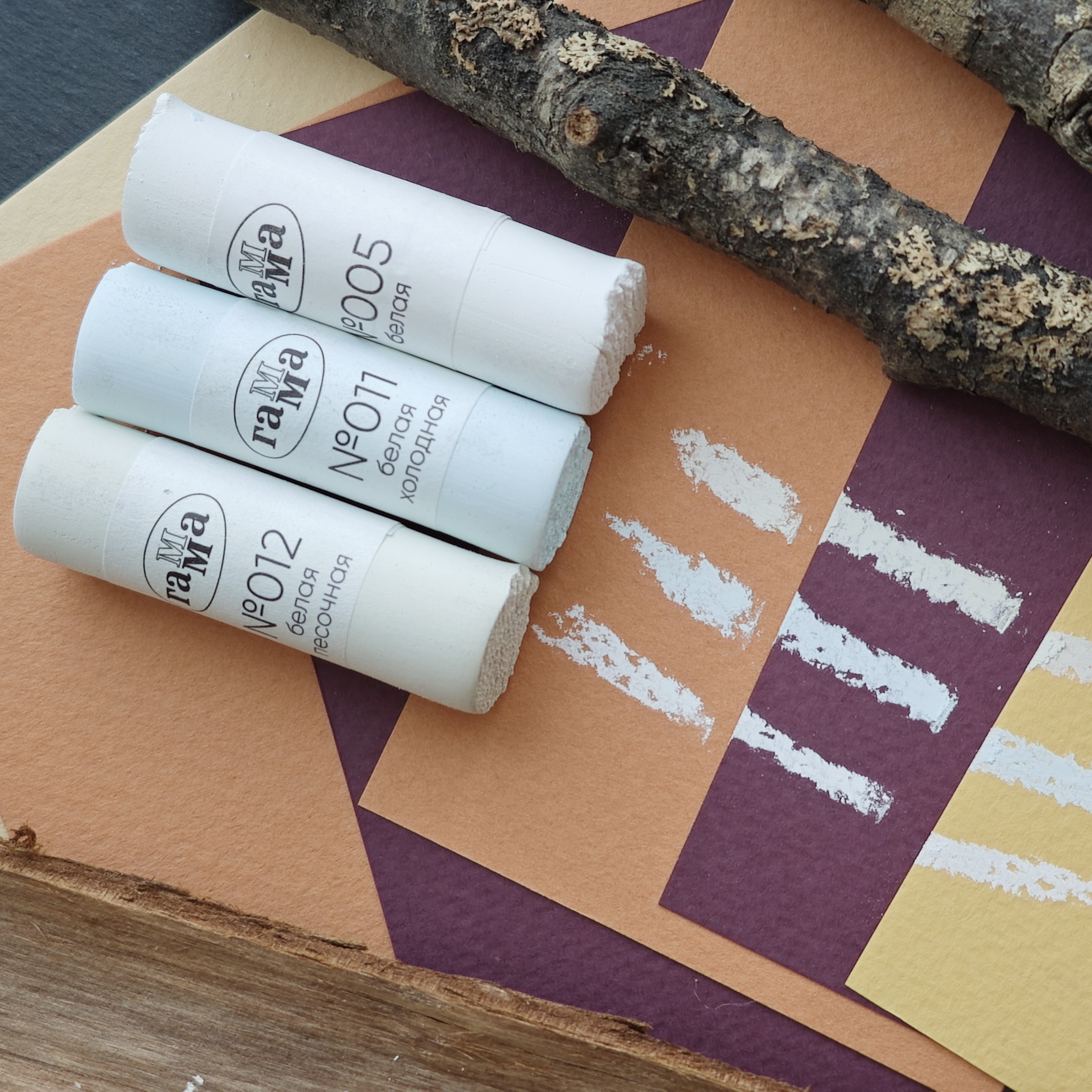 Цвета ровно ложатся на бумагу разных фактур. Для производства пастели используются тонкотертые пигменты и каолиновая глина высочайшего качества.