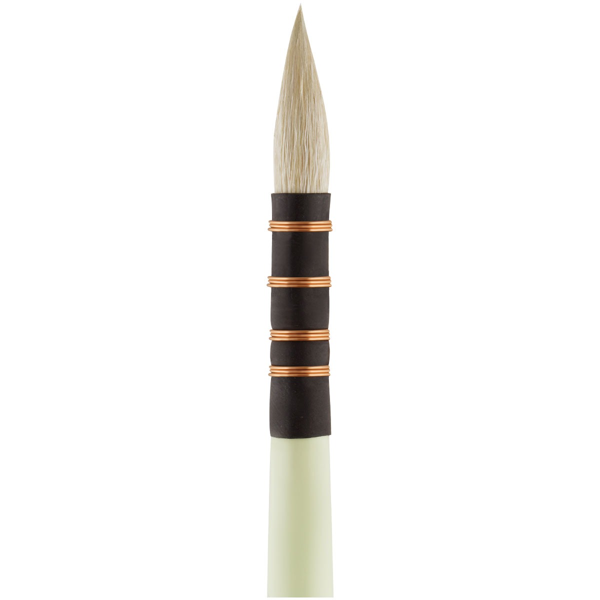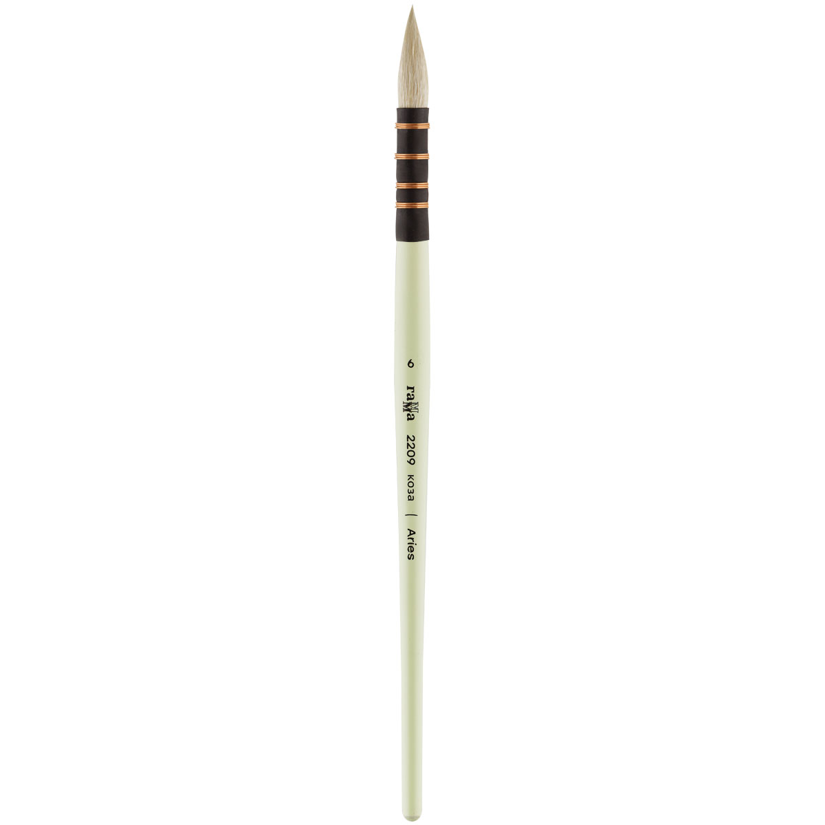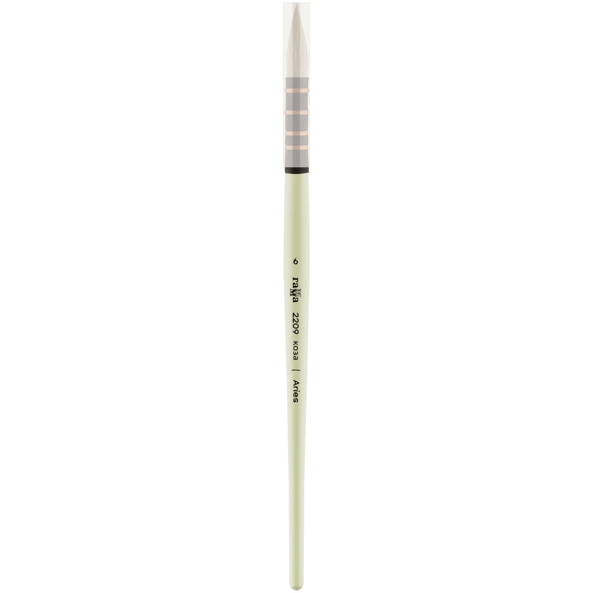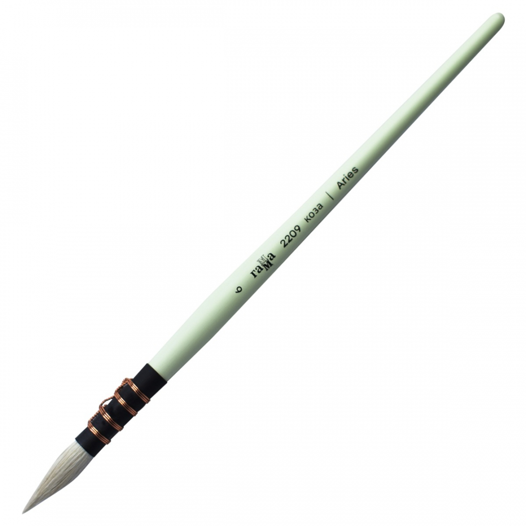Художественные кисти ГАММА серии «Aries» выполнены из белого волоса волоса козы и деревянной ручки нежно-зеленого цвета.