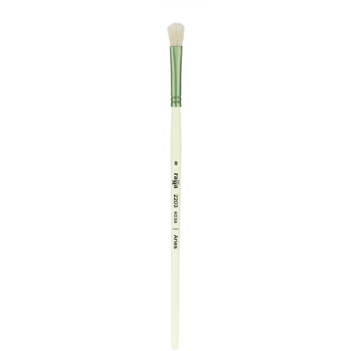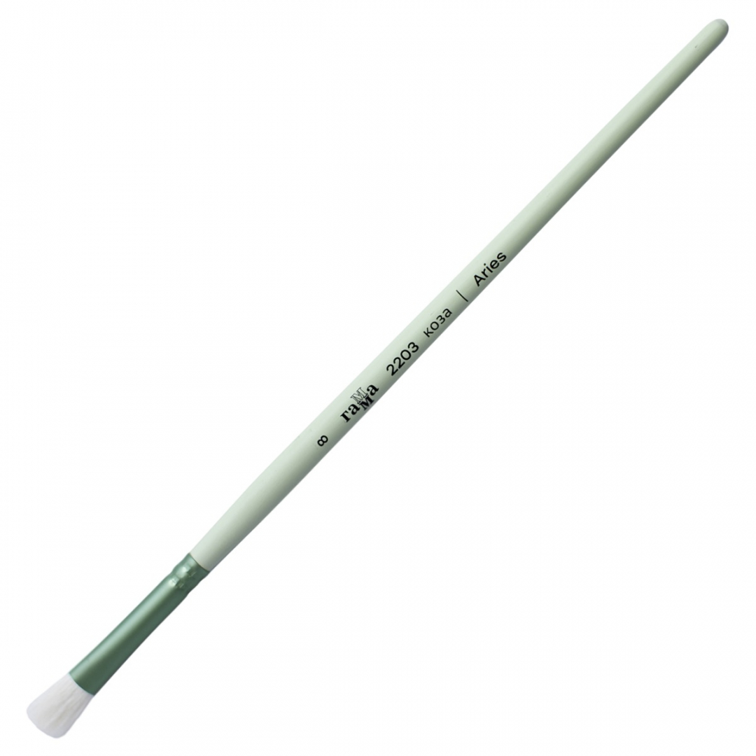 Художественные кисти ГАММА серии «Aries» выполнены из белого волоса волоса козы и деревянной ручки нежно-зеленого цвета. У кистей плотная набивка, за счет этого можно делать заливки, а тонкий кончик прорисовывает тончайшие детали. Кисти овальной формы подойдут для фоновых заливок и для фактурных мазков. Ворс козы берет в себя много воды. Такой кистью можно работать с большими объемами цвета, а также очень удобно использовать ее для фактурных мазков.