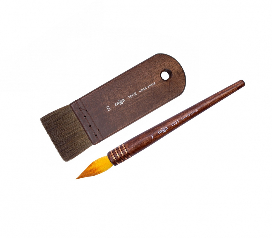 художественную кисть для каллиграфии и акварельной живописи с французским креплением № 10 и кисть-хейк из коричневой козы № 50.