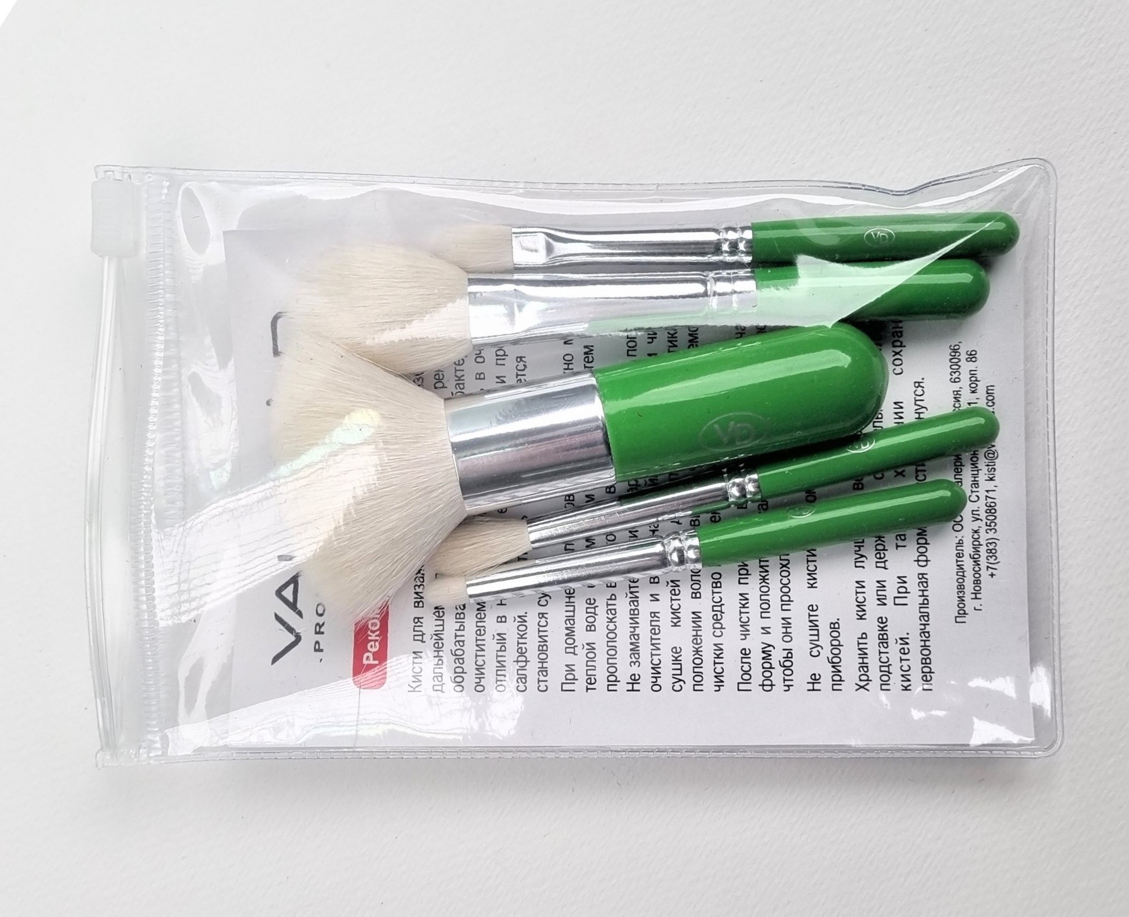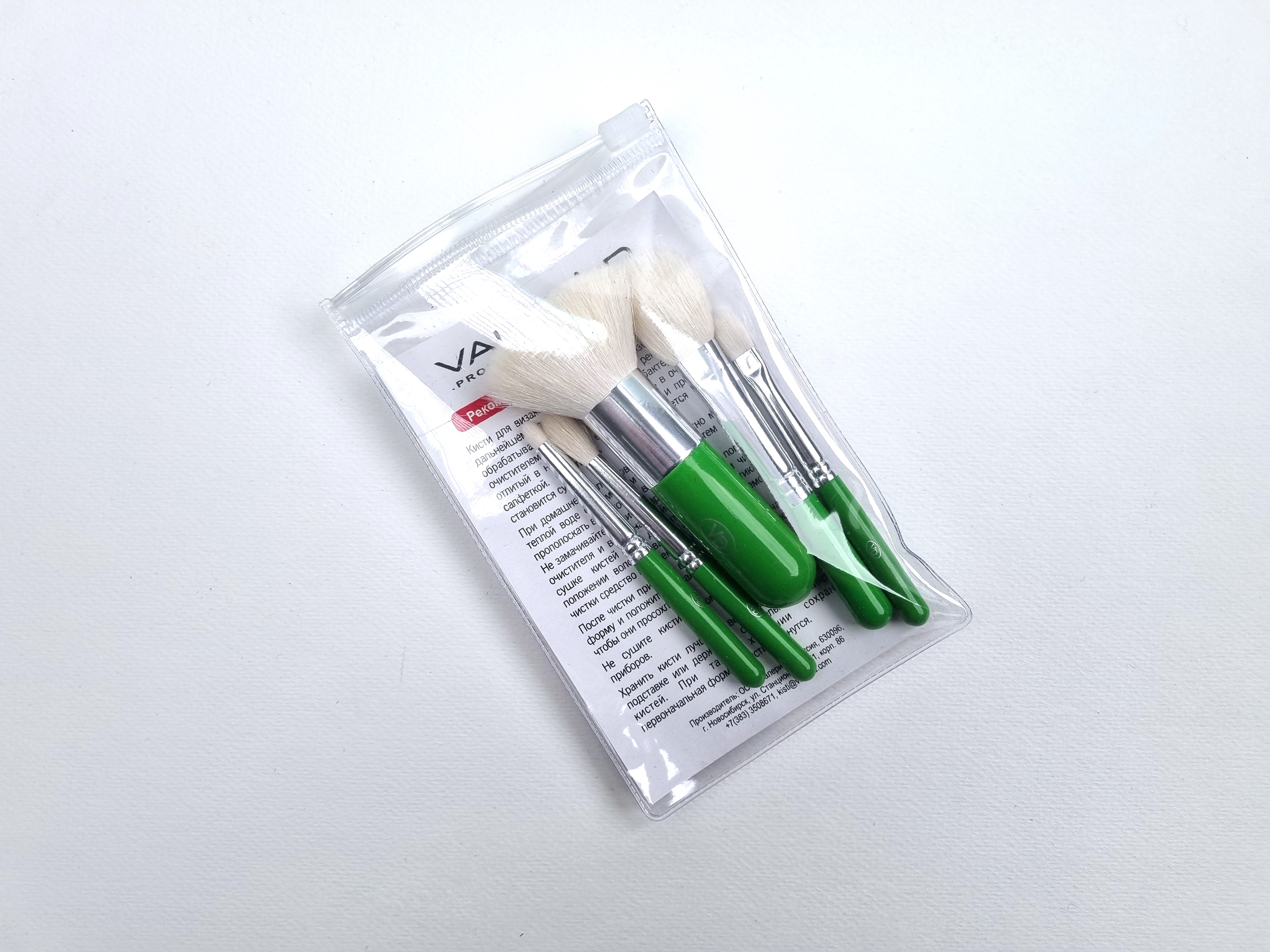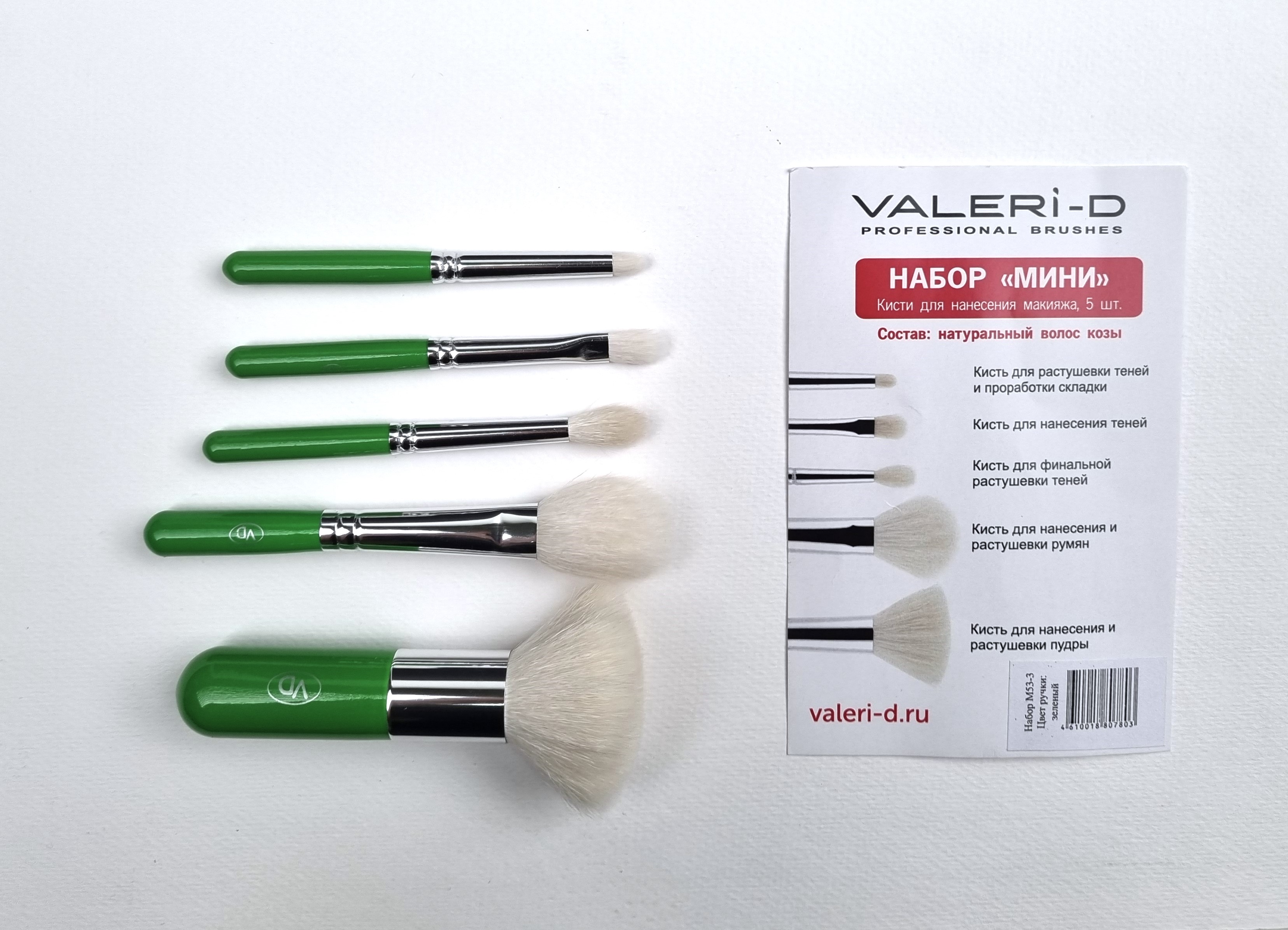 Набор из 5 кистей VALERI D "Мини" волос козы. цвет ручки: зелёный.