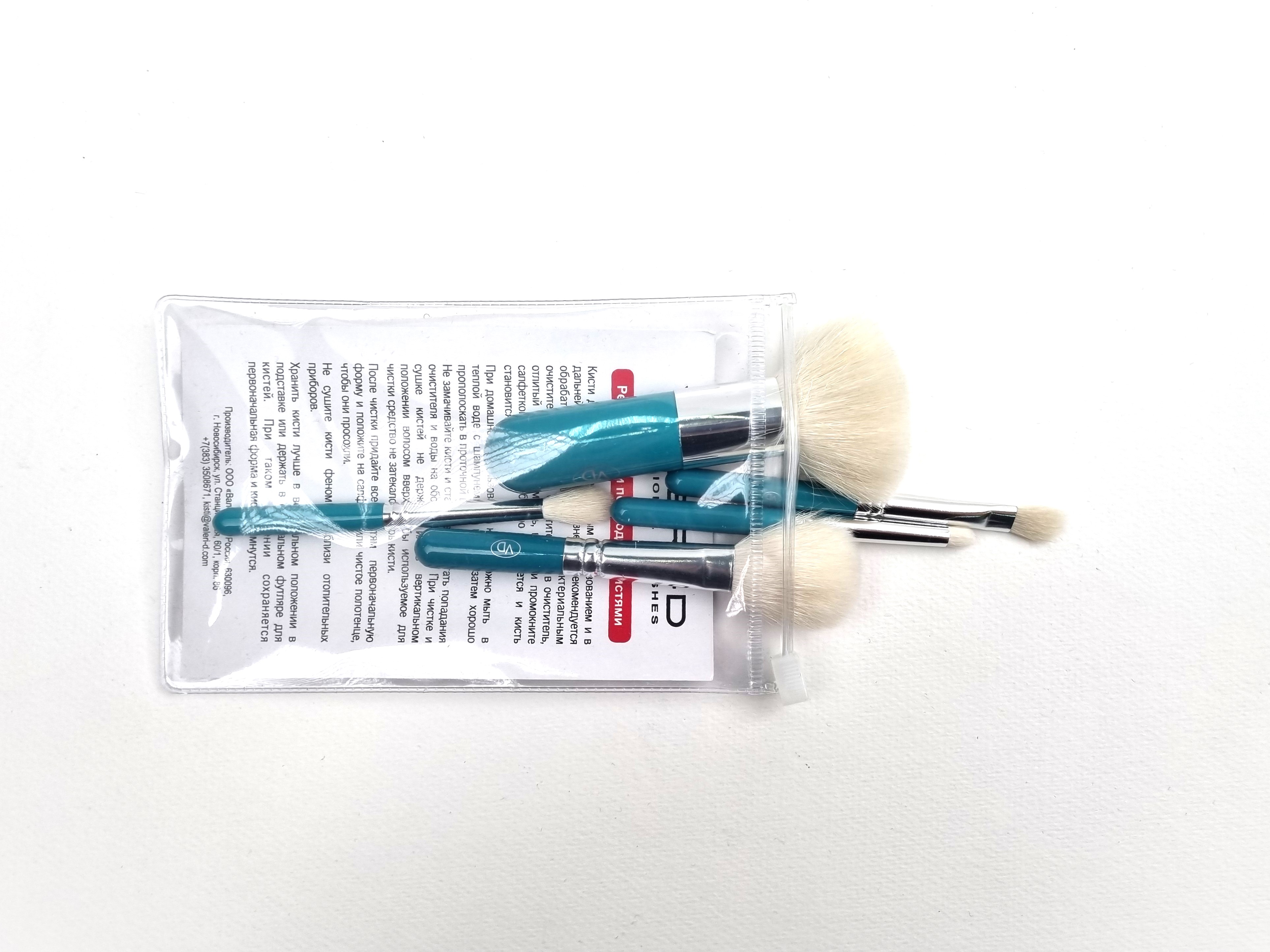 Набор из 5 кистей VALERI D "Мини" волос козы. цвет ручки: бирюзовый.