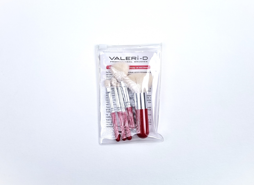 Набор из 5 кистей VALERI D "Мини" волос козы.цвет ворса:белый, цвет ручки:красный.