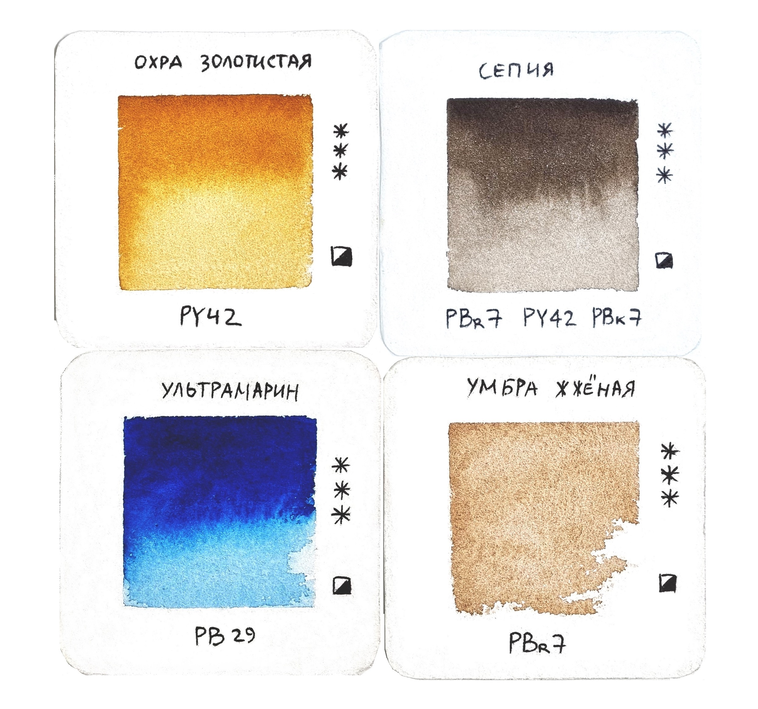 Примечание: представленные выкраски выполнены на бумаге из 100% хлопка.