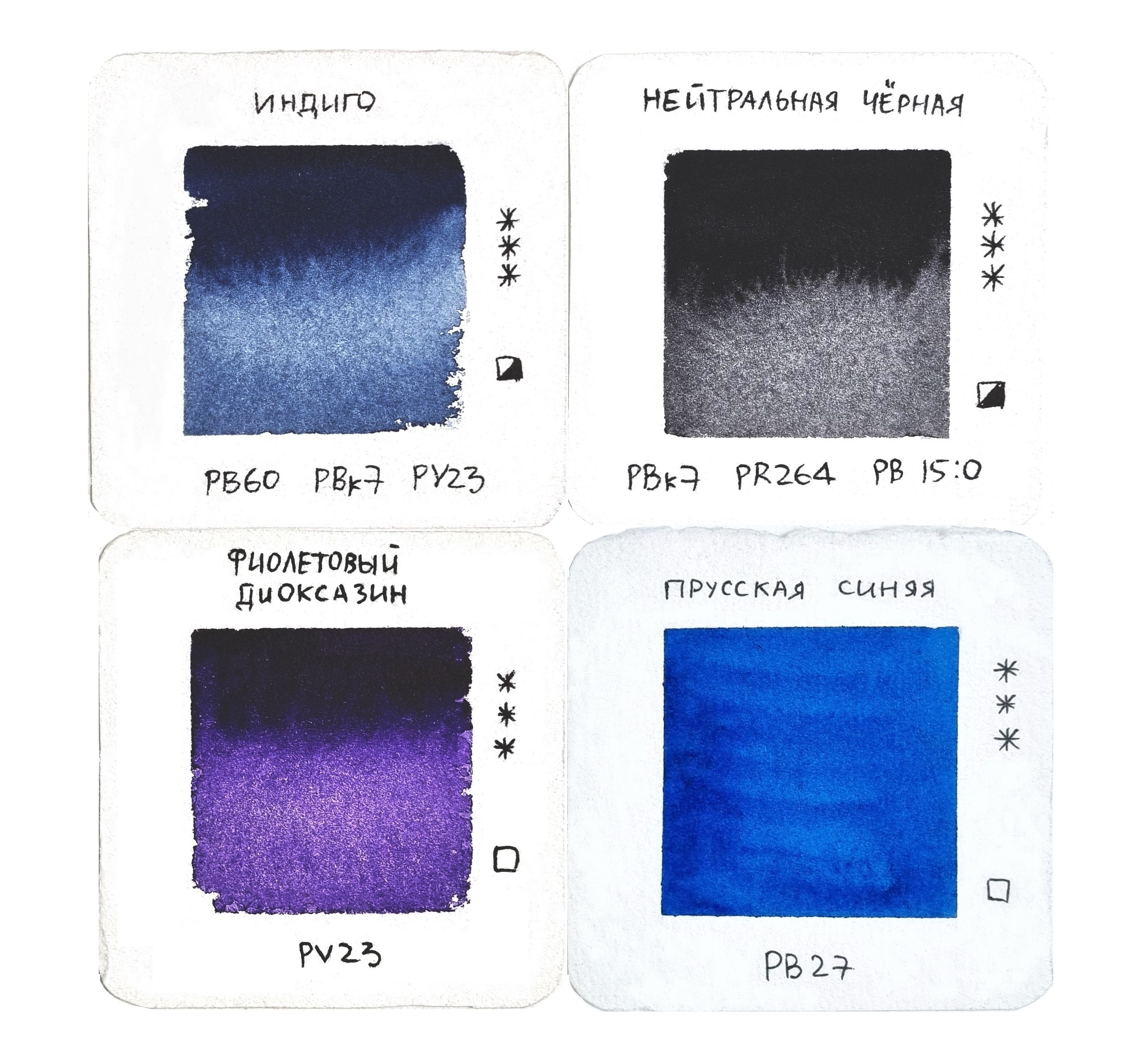 Примечание: представленные выкраски выполнены на бумаге из 100% хлопка.