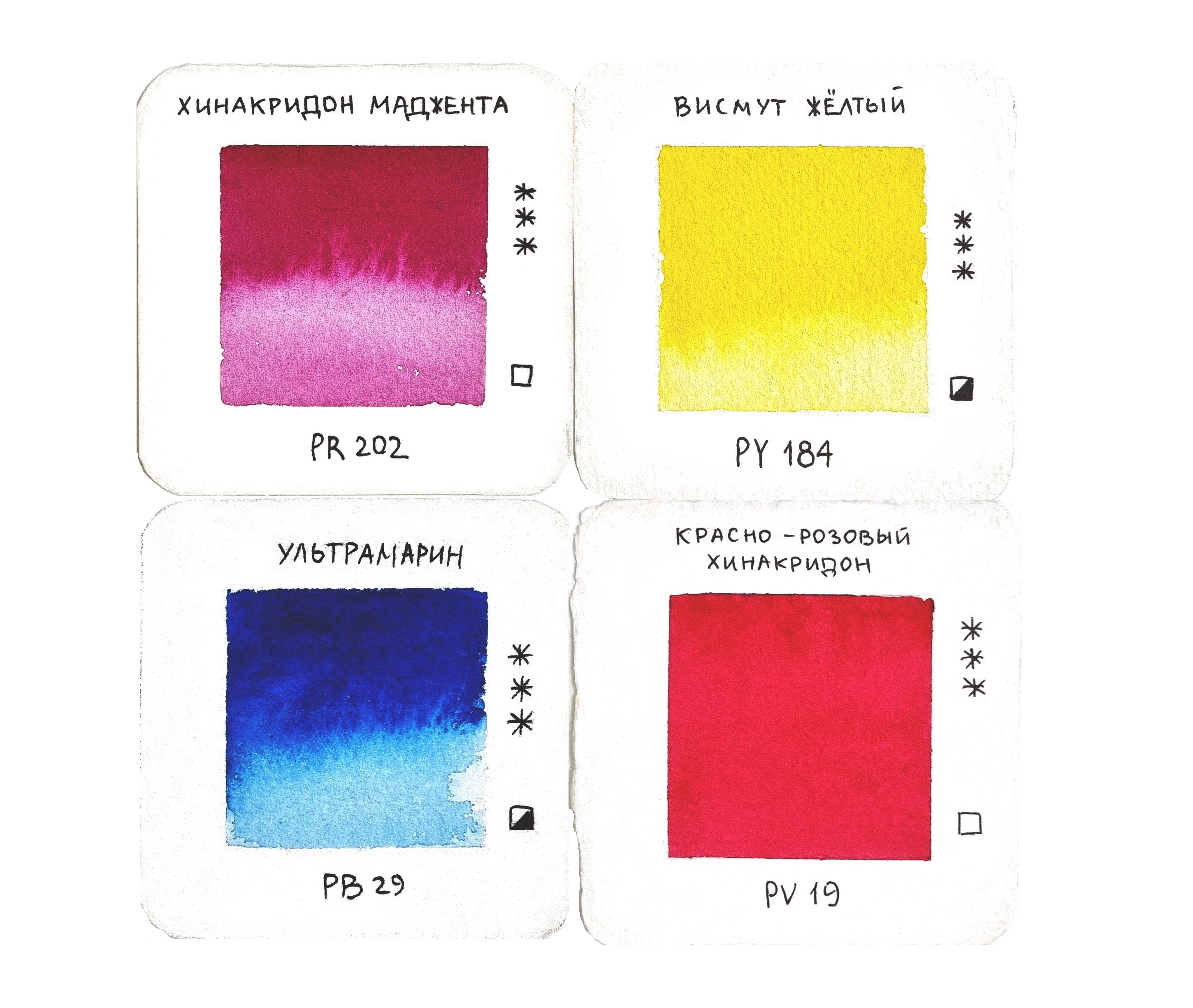 Примечание: представленные выкраски выполнены на бумаге из 100% хлопка.