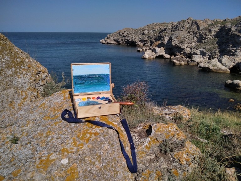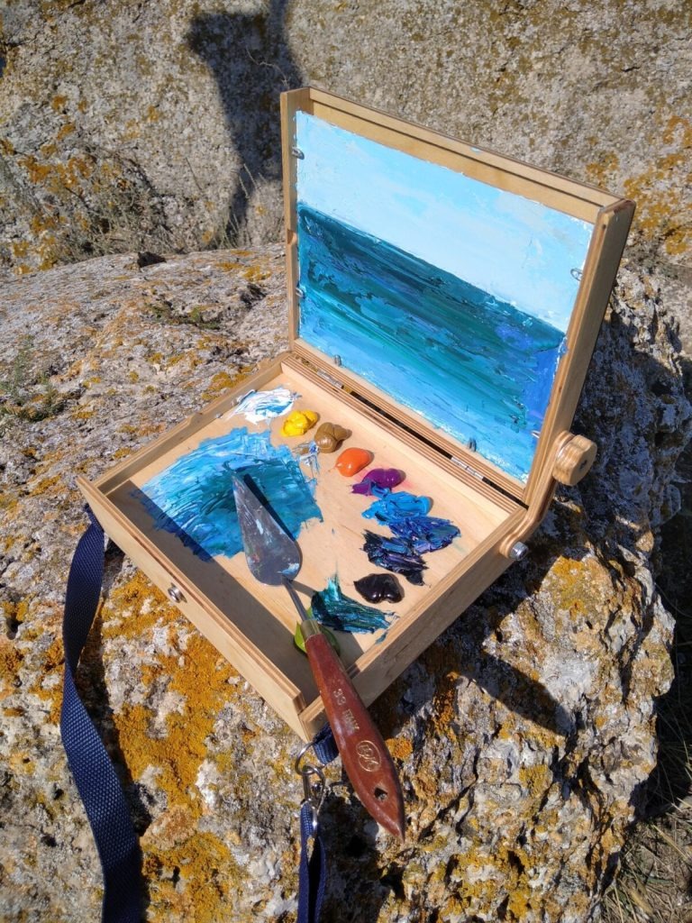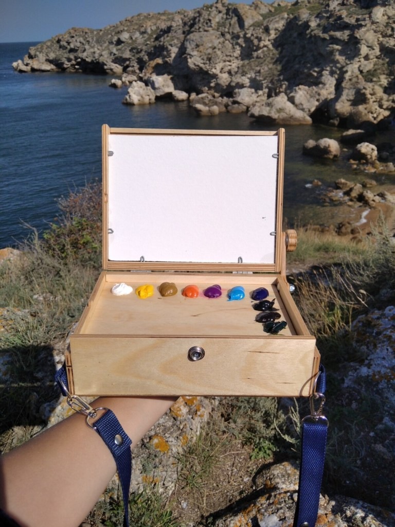 Компактный и лёгкий этюдник коробочного типа для картона и холста на картоне форматом 15×20 см.
