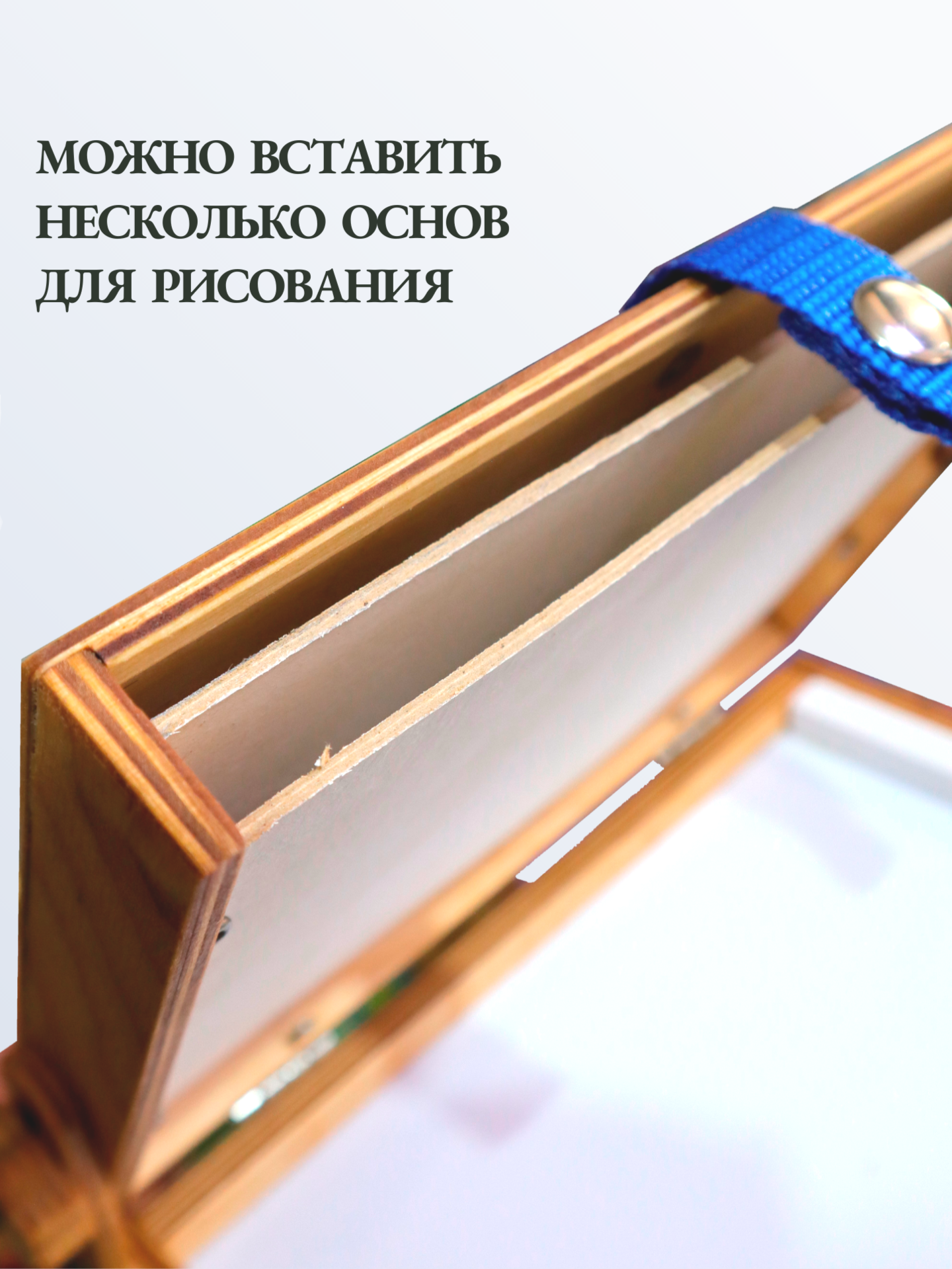 Этюдник также комплектуется плечевым ремнём с металлической фурнитурой для переноски на плече. Цвет ремня может варьироваться в зависимости от наличия на складе производителя!