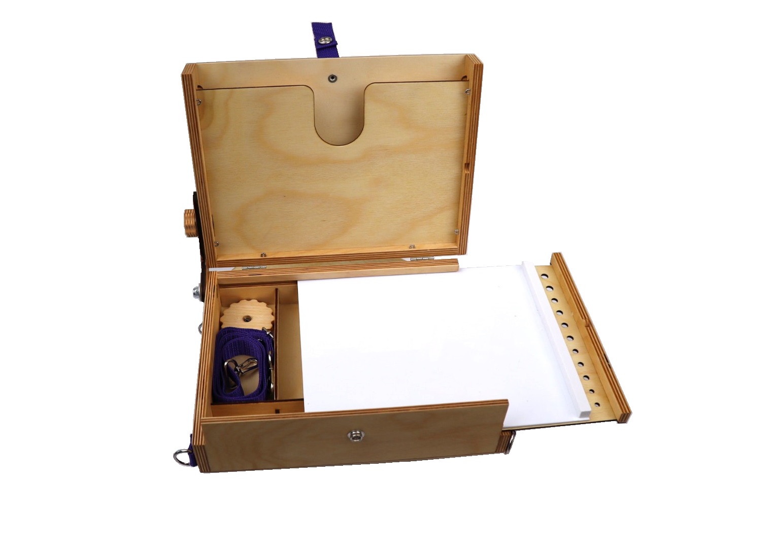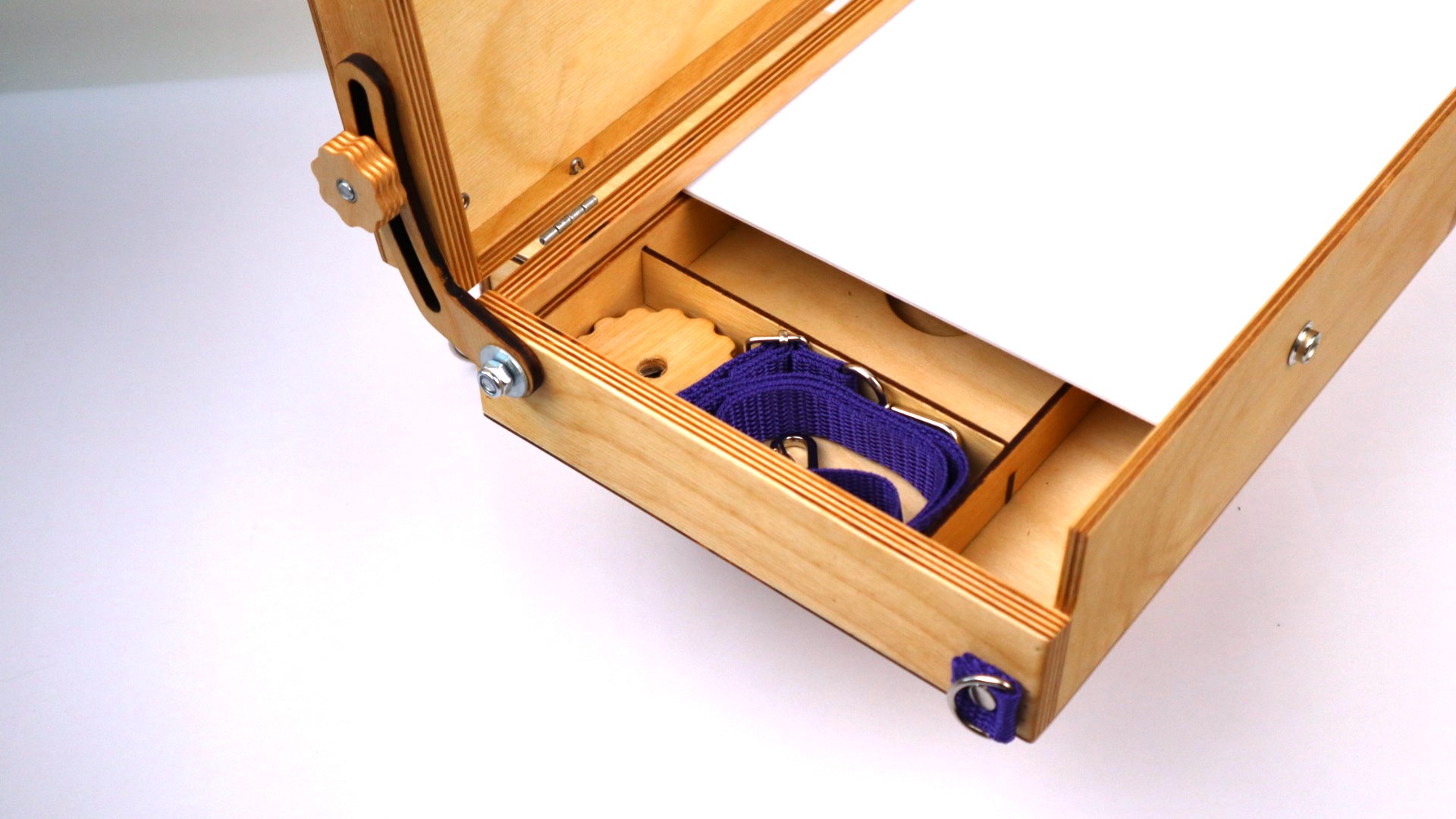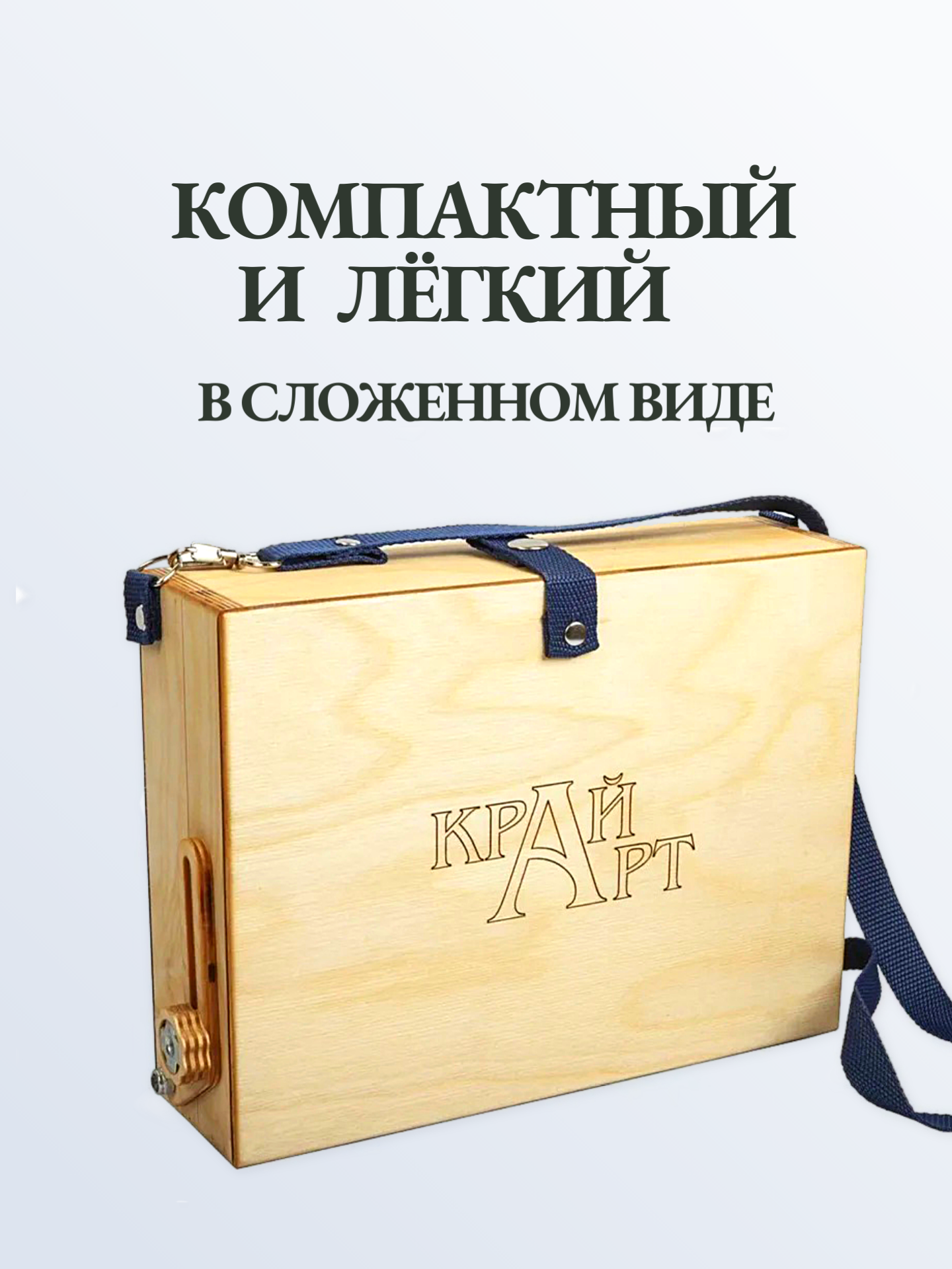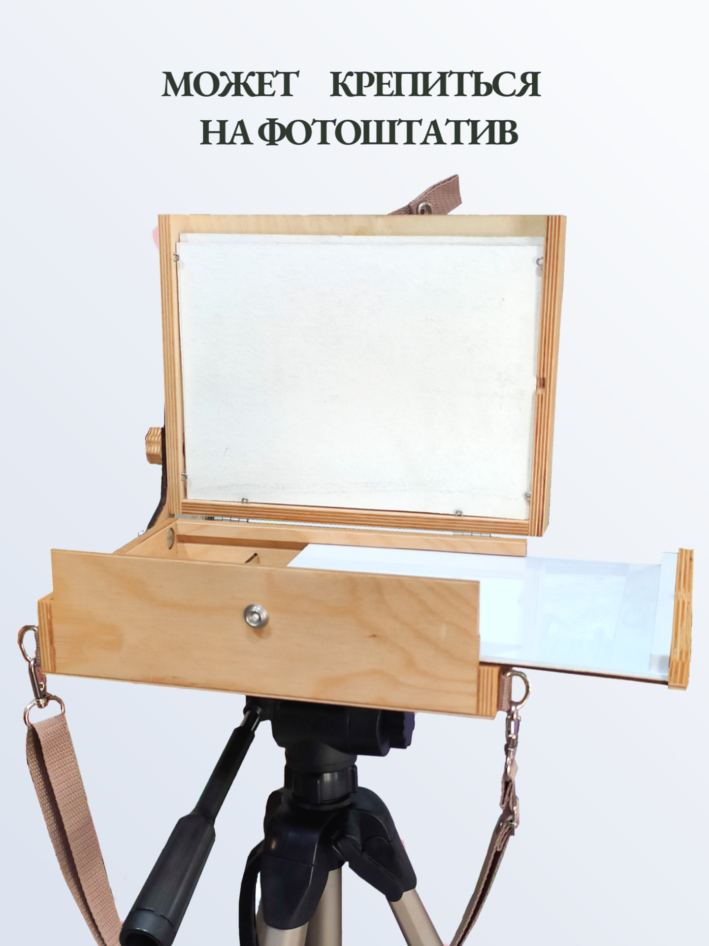 Этюдник также комплектуется плечевым ремнём с металлической фурнитурой для переноски на плече. Цвет ремня может варьироваться в зависимости от наличия на складе производителя!
