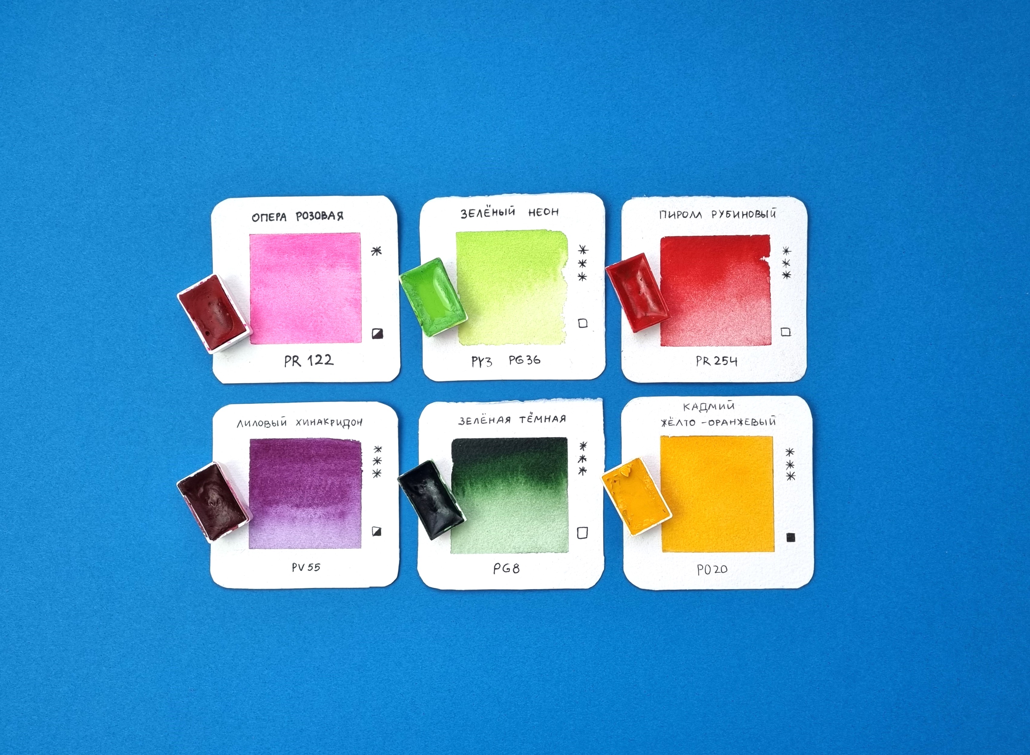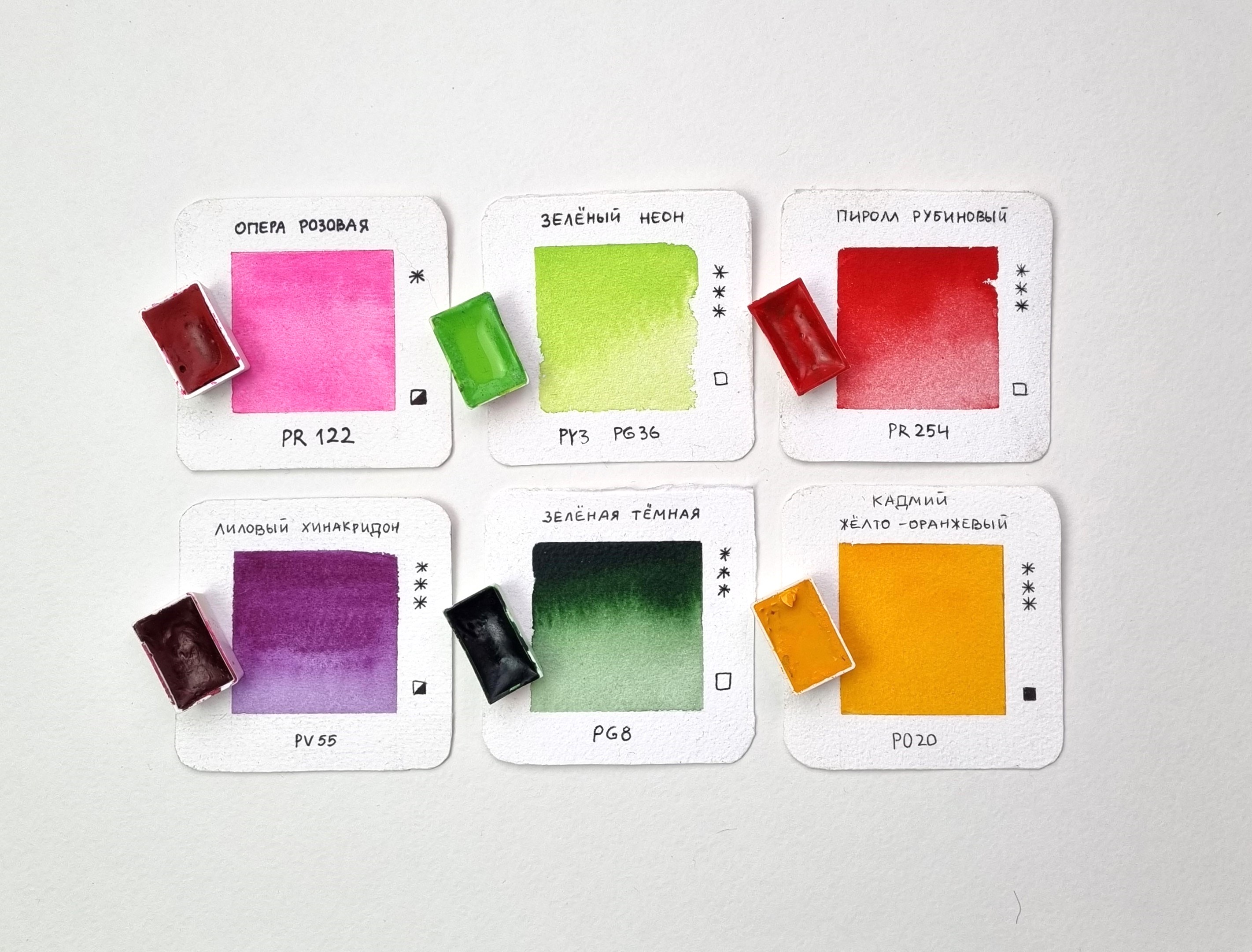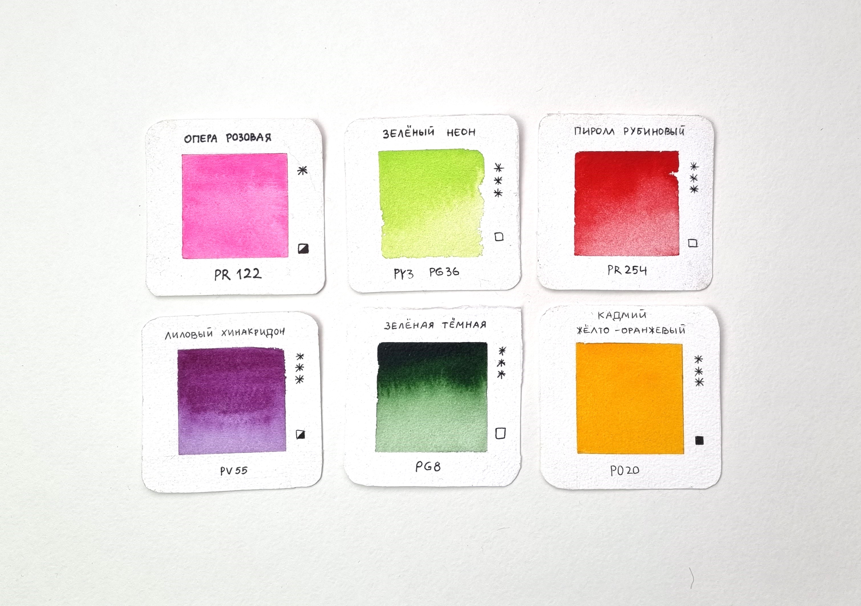Примечание: представленные выкраски выполнены на бумаге из 100% хлопка.