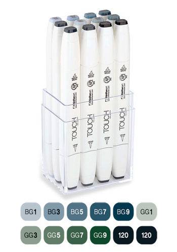 Набор BRUSH Touch Twin 12 цветов сине-зеленые тона
