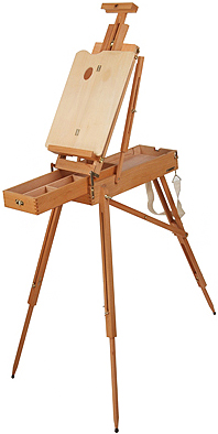 Во внутреннем ящике этюдника можно разместить кисти, краски и другие вспомогательные принадлежности. Выдвижная мачта с регулируемым наклоном позволяет разместить холсты различных размеров.