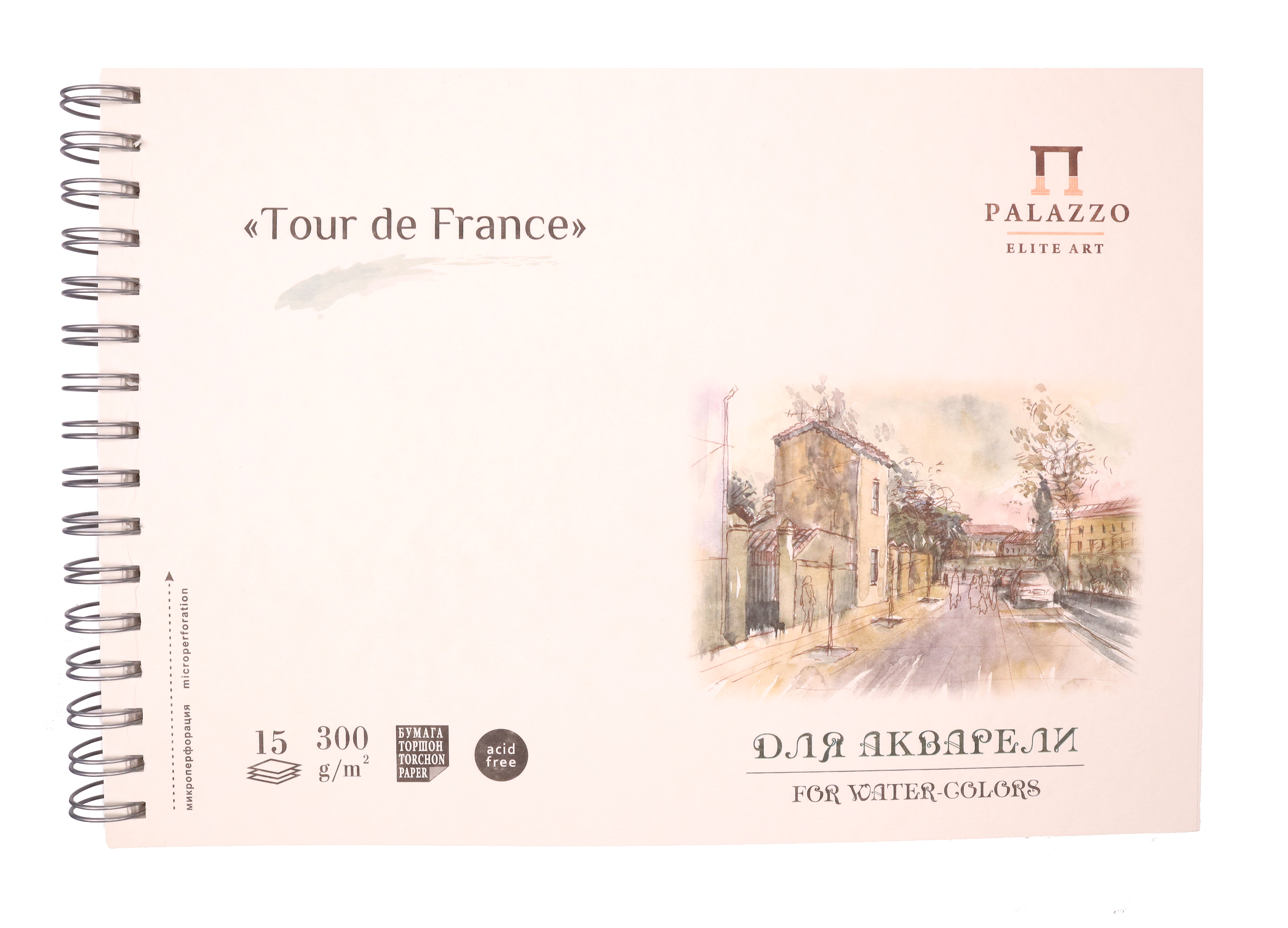 Альбом для акварели "Tour de France", A4 (210*297 мм), 15 листов.