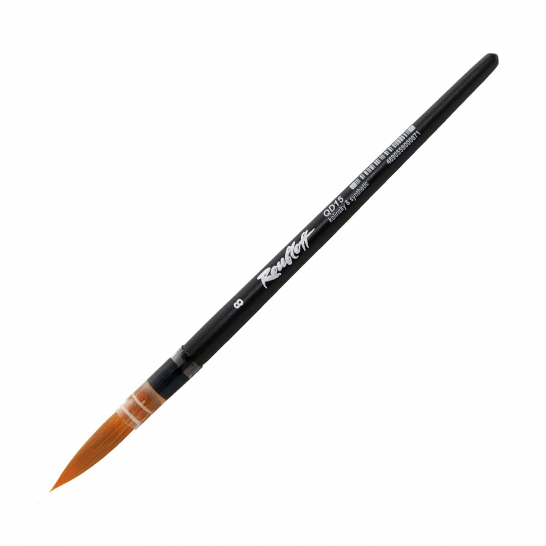 Кисть колонок микс круглая короткая ручка "QD15" №08 для акварели, туши