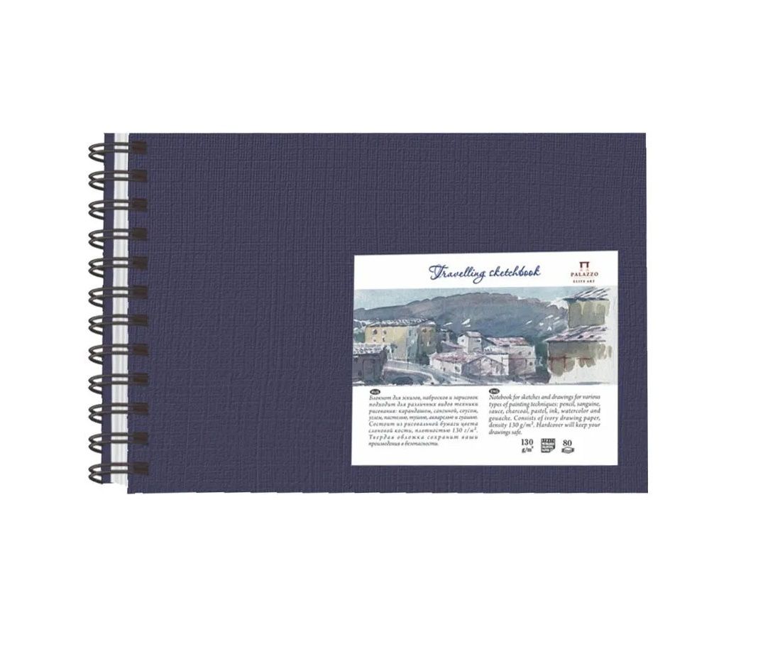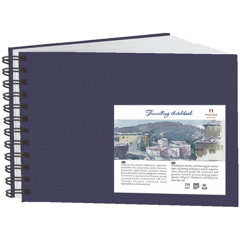 Скетчбук "Travelling sketchbook" Синий A5 (148*210 мм), 80 листов, на спирали слева.