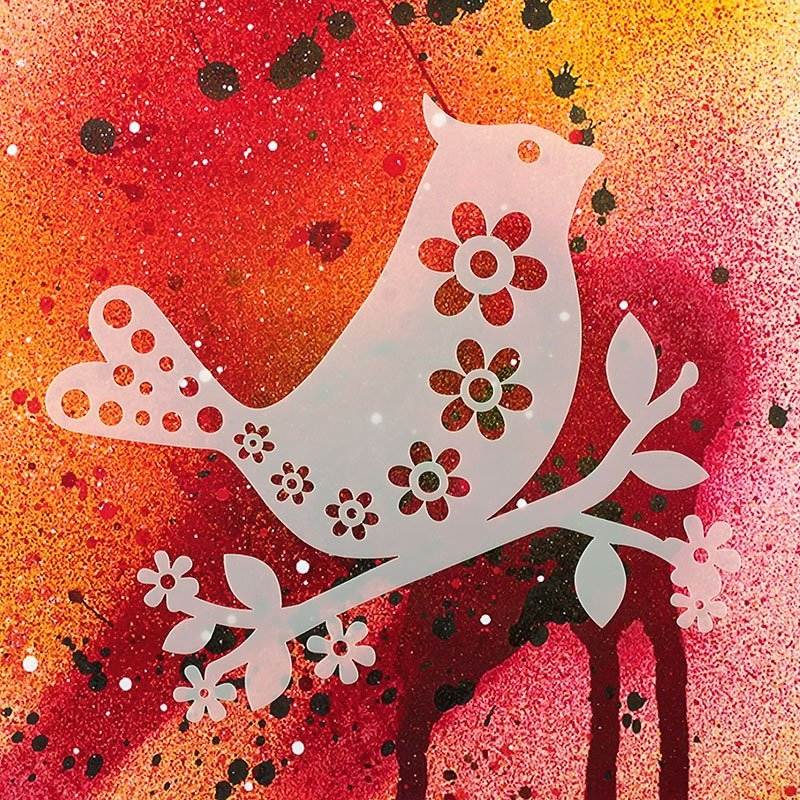 Трафарет-силуэт Marabu, 009 птица с цветочками 15*15 см