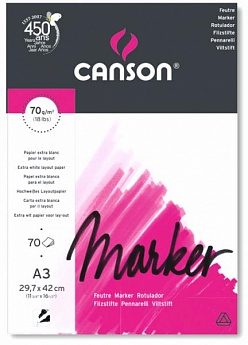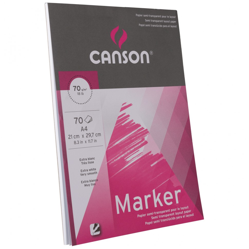 Ультрабелая, полупрозрачная экстра гладкая бумага для маркеров в склейке Canson Marker Layout - идеальное решение для скетчинга спиртовыми маркерами от французского бумажного бренда Canson.