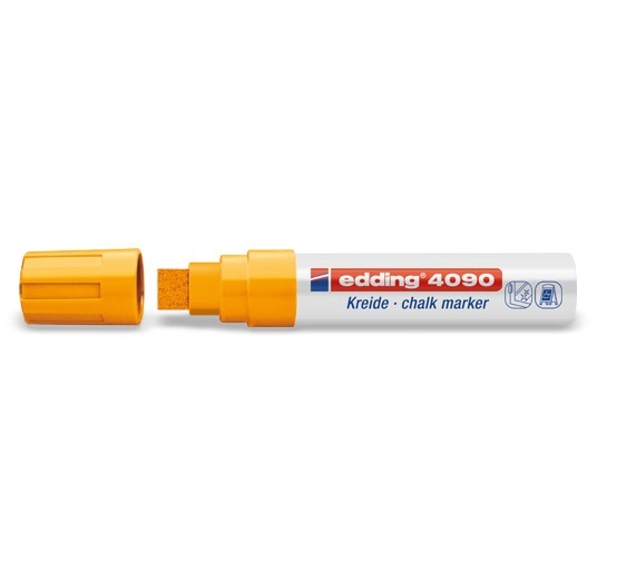 Корпус маркера изготовлен из прочного пластика. Маркер Edding-4095 имеет устойчивый, износостойкий (пулевидный) наконечник. Универсальный маркер на меловой основе предназначен для нанесения информации на любую гладкую поверхность – на стекло, кафель, керамику, пластик. Также возможно использование мелового маркера на деликатных пленчатых поверхностях, меловых досках, а так же на ряде шероховатых поверхностей. С любой гладкой поверхности хорошо стирается сухой губкой, с шероховатой поверхности удаляется водой. Чернила на основе разведенного мела не имеют запаха, не токсичны содержат высокую концентрацию меловых частиц, что позволяет им хорошо ложиться на гладкие и шероховатые поверхности, оставляя густую, плотную линию даже на темных поверхностях. Многие столичные супермаркеты и гипермаркеты уже используют наш маркер для нанесения информации на пластиковые или картонные ценники в торговых залах. Достоинство новых информационных табличек очевидно – надпись можно легко нанести и обновить, она яркая и заметная, а значит, привлекает взгляд. Теперь с помощью маркера Edding - 4095 возможно легко создать свой неповторимый фирменный стиль