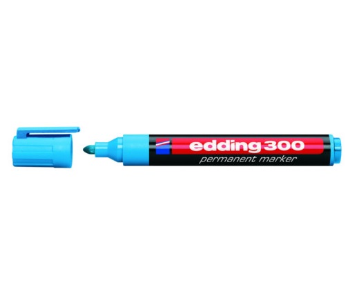 Перманентный маркер круглый 1,5-3мм голубой. Маркеры Edding "300", "330", "370", "390" применяются для маркировки и декорирования практически любых материалов: бумага, картон, металл, стекло, пластик, керамика, дерево. Также возможно письмо на ряде других поверхностей, таких как влажное дерево, грязный и ржавый металл, пленки, кафель и многих других. Надпись, сделанная маркерами этих серий, будет устойчива к смыванию водой и выгоранию.