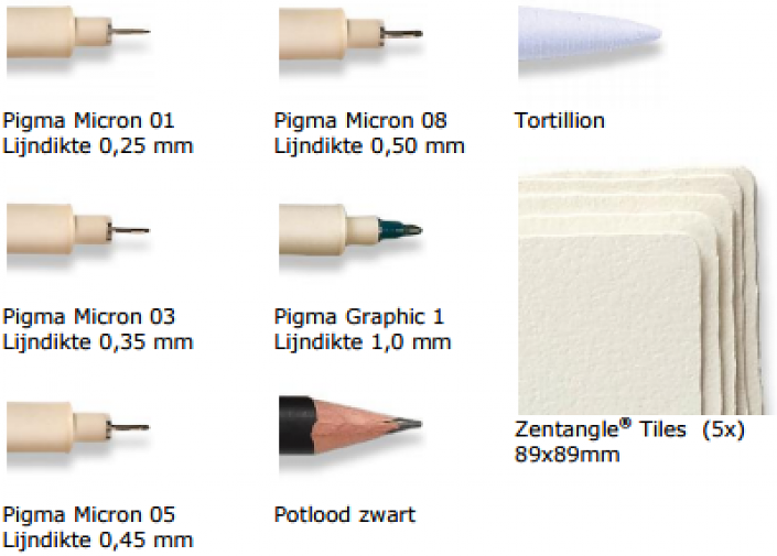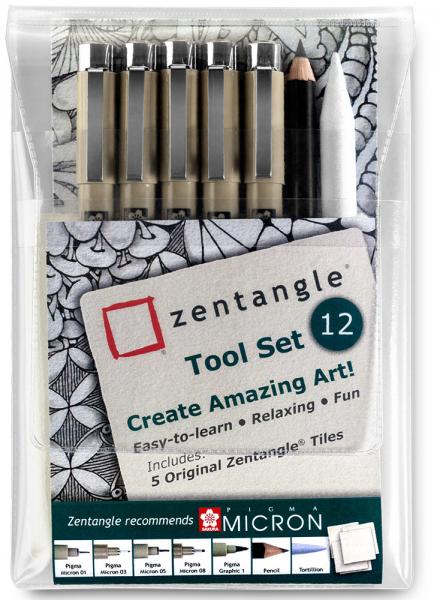 Набор Zentangle 12 предметов: линеры Pigma Micron 4шт, Pigma Graphic, растушевка, карандаш, бумага 5л