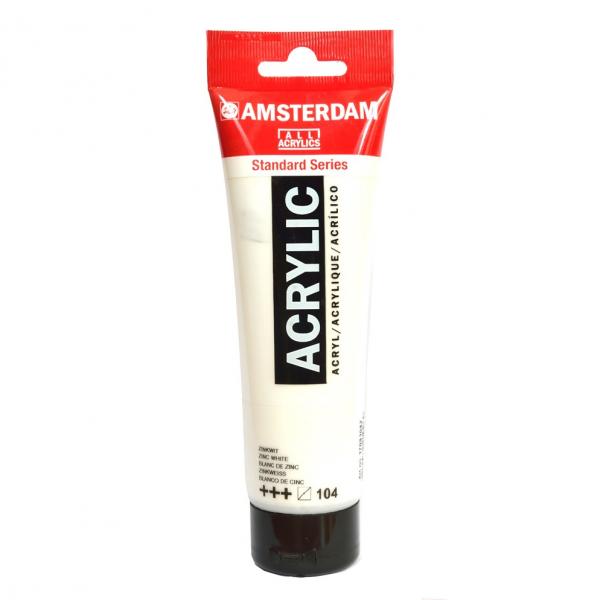 Акриловая краска AMSTERDAM, туба 20мл, №104 Цинковые белила