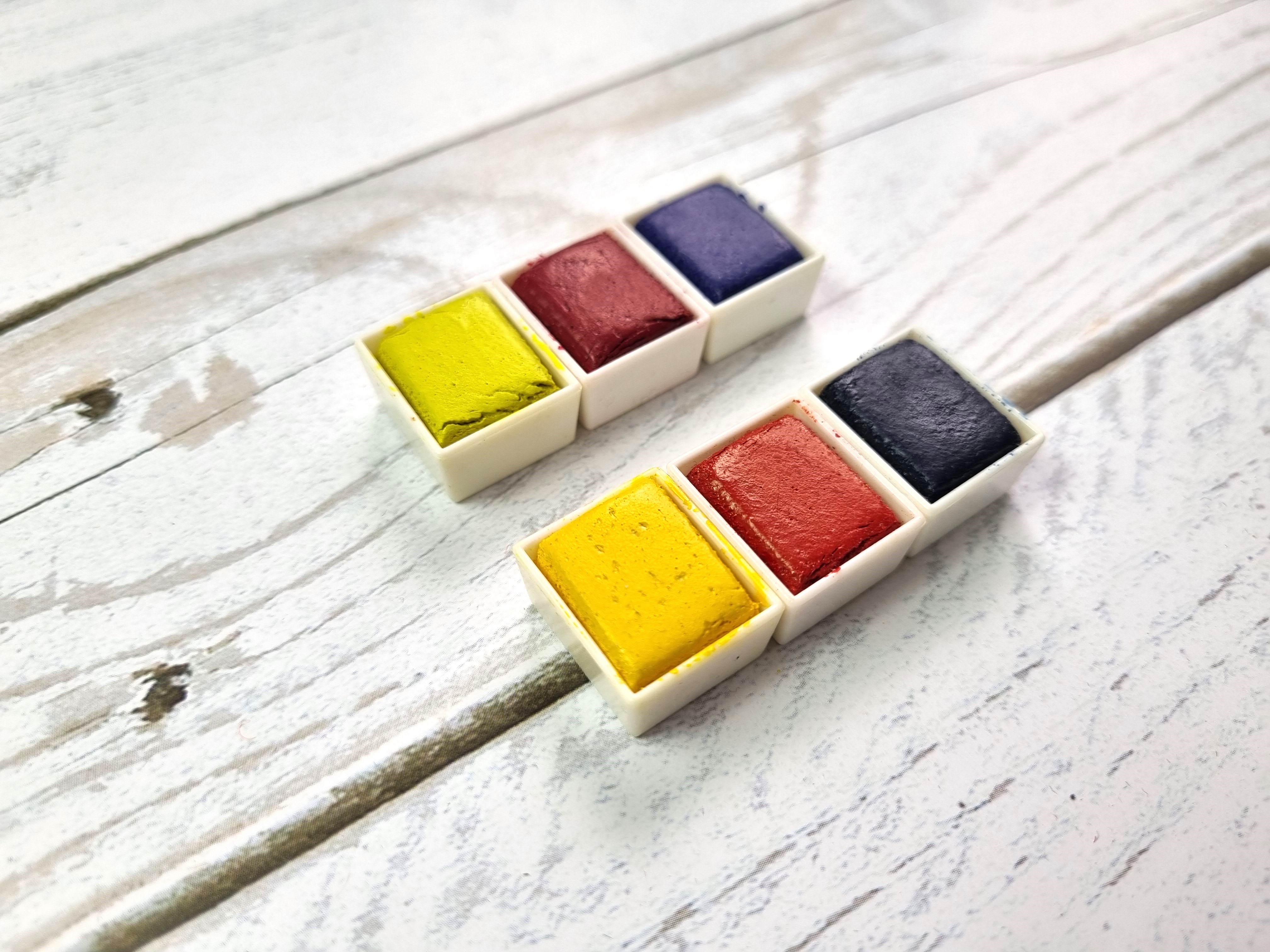 Краски изготавливаются в Южной Корее из самых лучших и безопасных материалов. В кюветах пигменты замешаны на основе чистейшего гуммиарабика из кордафана, без добавок и примесей. Это позволяет достигнуть в работах высокой интенсивности цвета и максимальной яркости, после высыхания краски. Все цвета отлично смешиваются между собой.