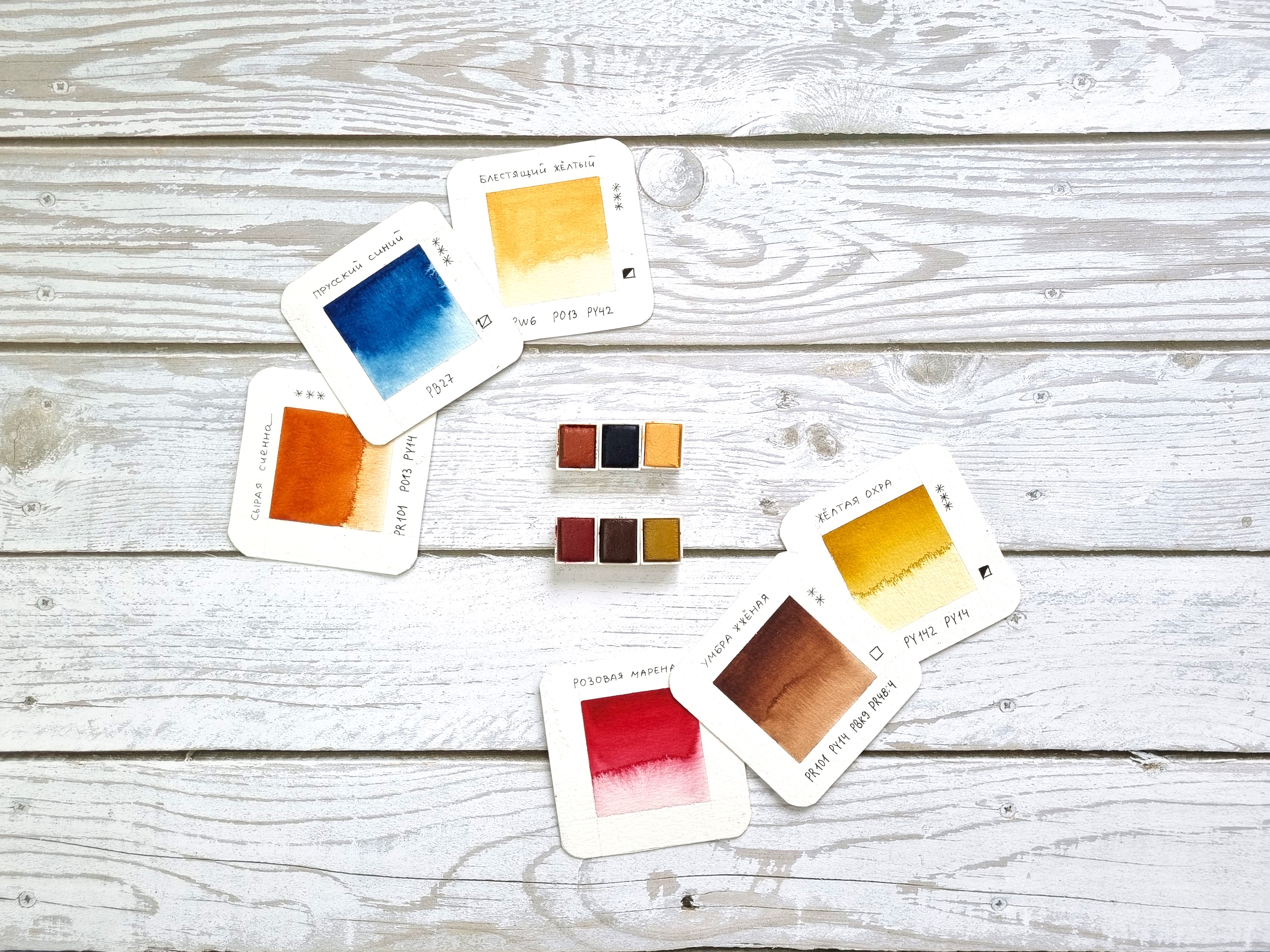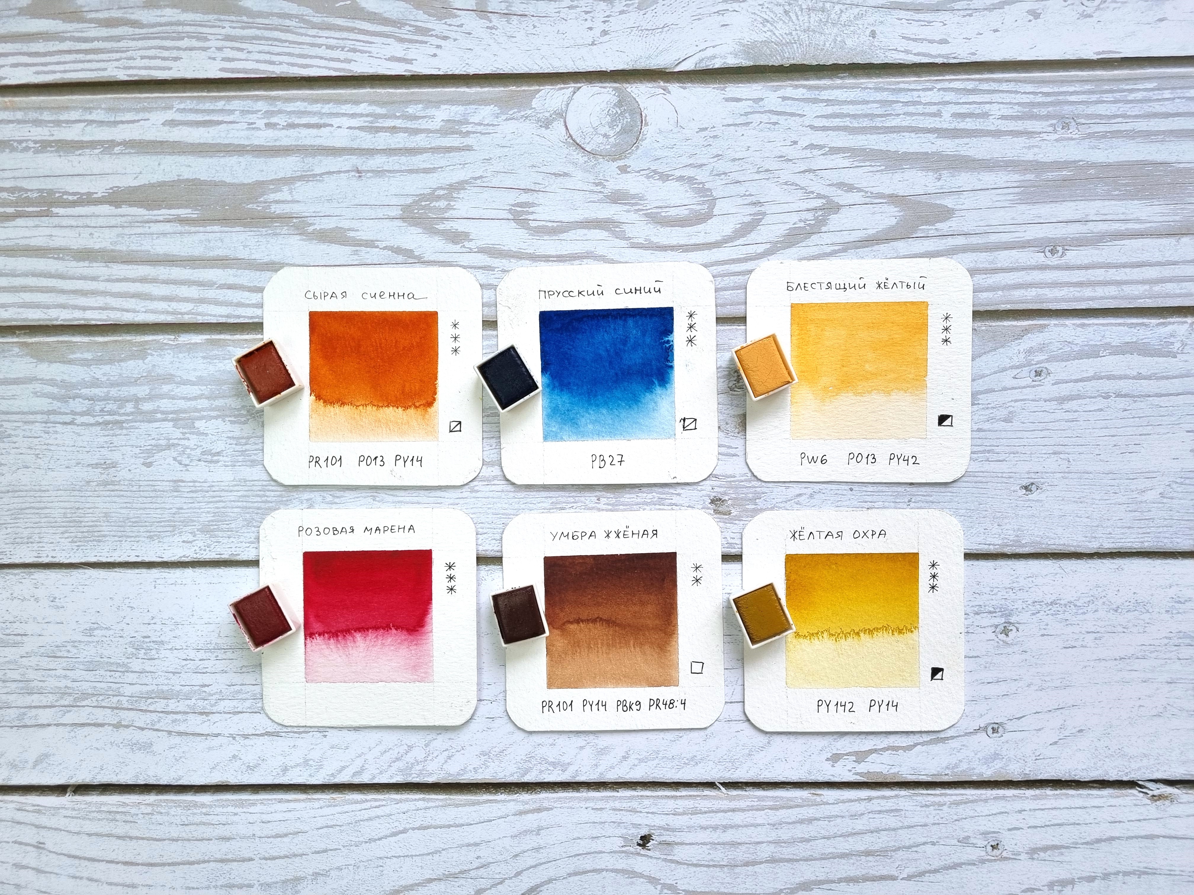 Краски изготавливаются в Южной Корее из самых лучших и безопасных материалов. В кюветах пигменты замешаны на основе чистейшего гуммиарабика из кордафана, без добавок и примесей. Это позволяет достигнуть в работах высокой интенсивности цвета и максимальной яркости, после высыхания краски. Все цвета отлично смешиваются между собой.
