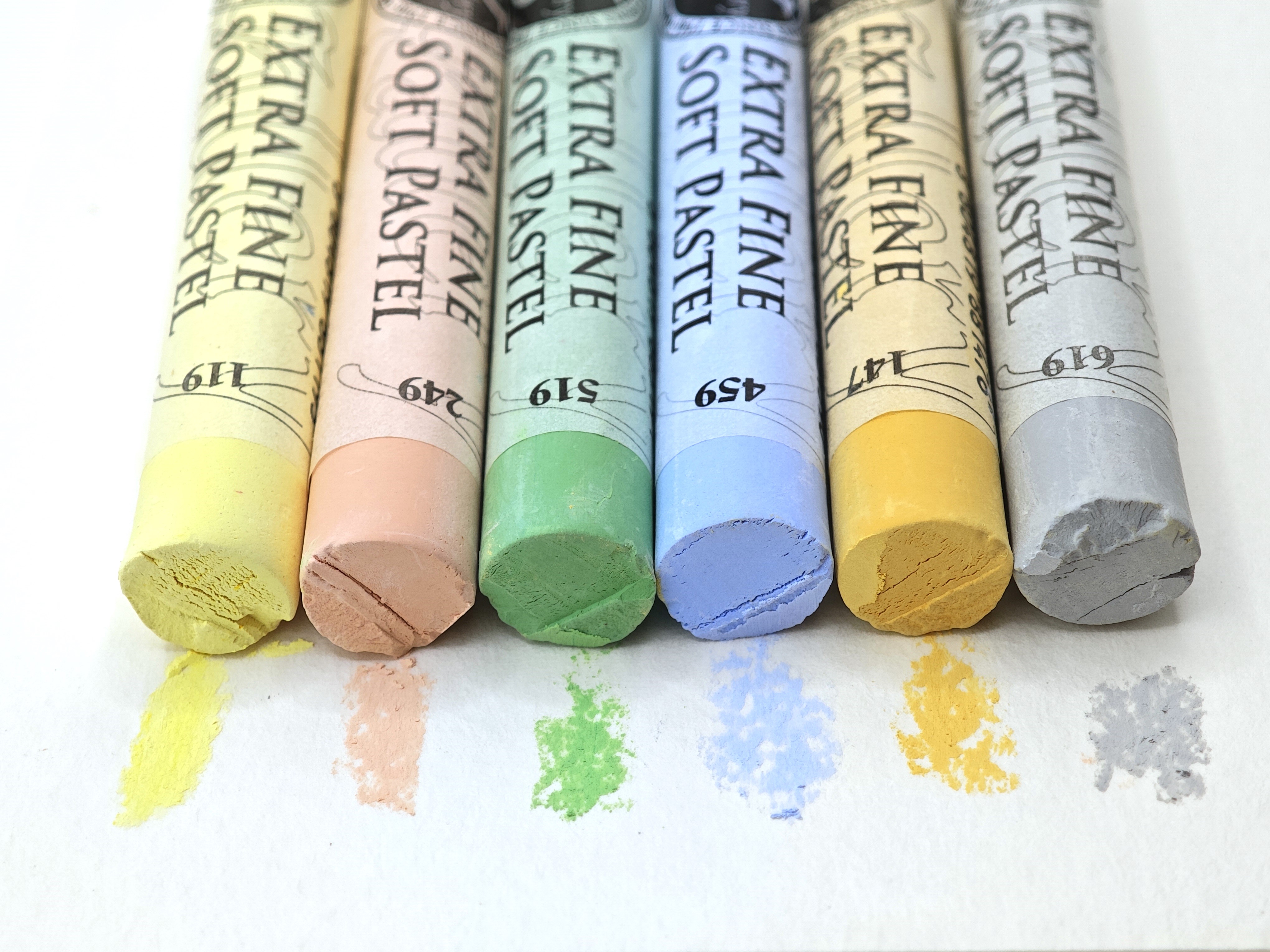 Набор из 6 круглых в сечении мелков полного размера мягкой профессиональной сухой пастели Gallery от корейского бренда Mungyo.