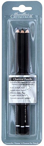 Набор угольных карандашей в блистере, 3 карандаша мягкий, средний твёрдый