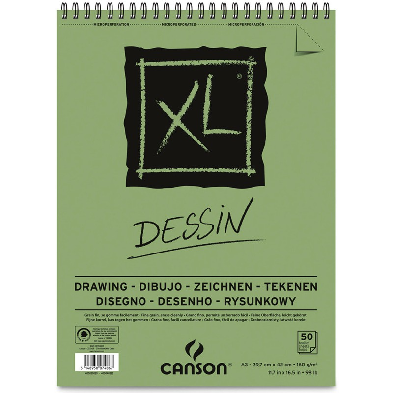 Альбом для графики Canson XL Dessin. Альбом мелкозернистой бумаги для карандаша, пастели, угля и пера. Бескислотная, отличается высокой устойчивостью к исправлениям.