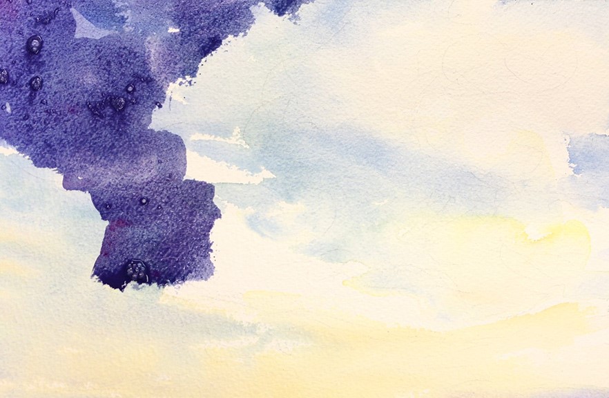 В градиенте можно наблюдать мягчайшие всполохи с короткими лучиками, эти заливки словно уютные, шерстяные. Деликатность того, как эта поверхность обращается с краской вызывает понимание, что такое профессиональная акварельная бумага.