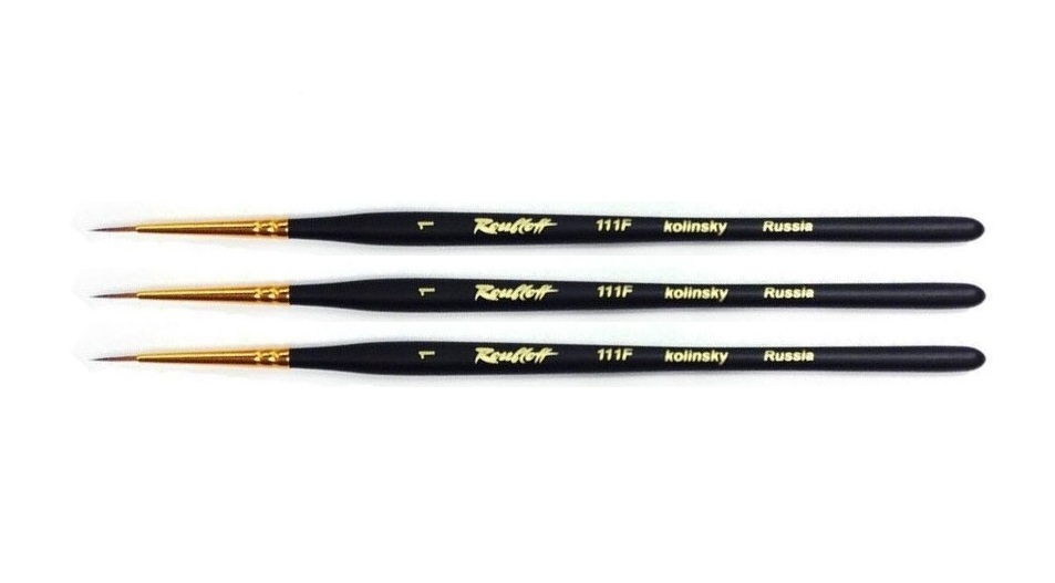 Кисть колонок круглая короткая ручка "111F " №1 для акварели, 3шт