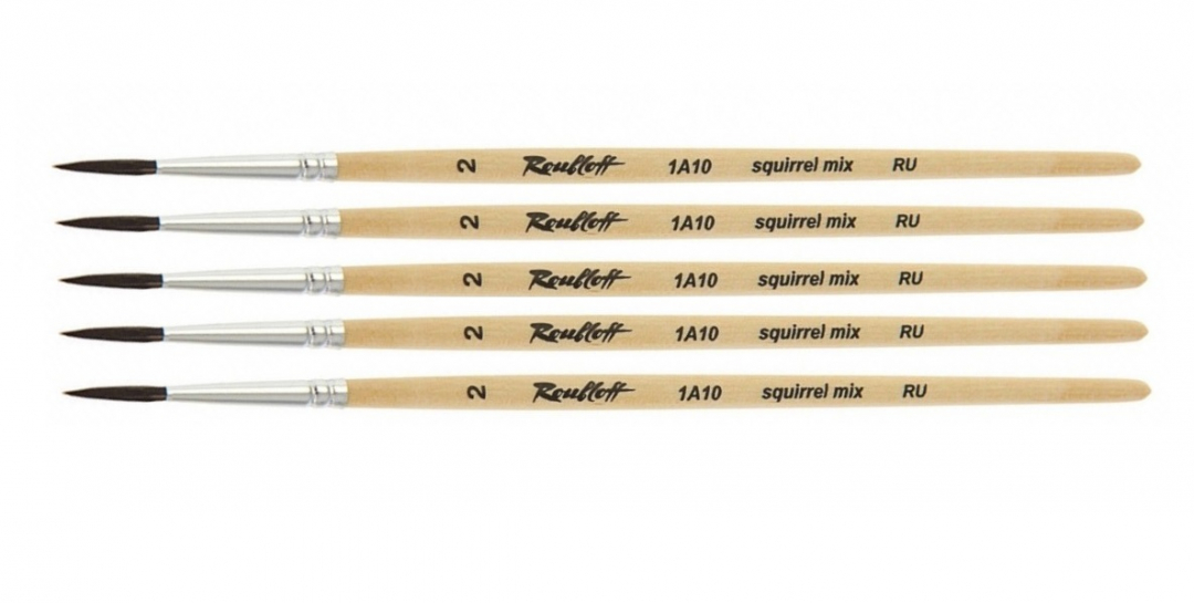 Кисть белка микс круглая короткая ручка "1A10" №2 для акварели, туши, 5шт
