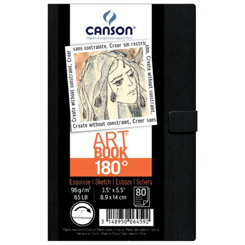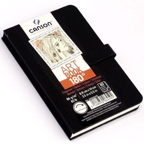 Блокнот для зарисовок Canson Art Book 180. Скетчбук с высококачественной бескислотной бумагой Crob’Art. Подходит для работы ручками, линерами, фломастерами, маркерами, карандашами, пастелью и углем. Прочный тканевый переплет скетчбука позволяет ему раскрываться на 180° и использовать обе страницы разворота. А твердая обложка с магнитной застежкой обеспечивает надежную сохранность рисунков.