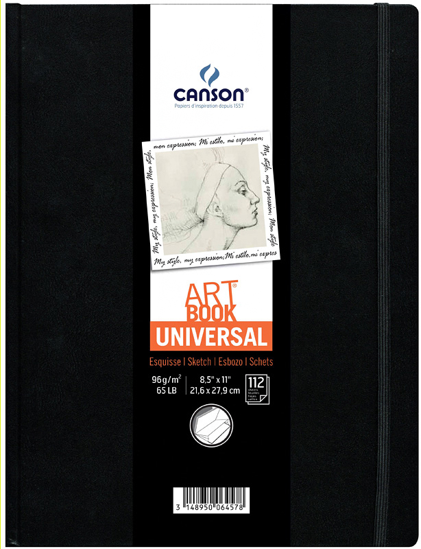 Универсальный скетчбук Canson Art Book Universal с высококачественной бескислотной бумагой Crob’Art для эскизов, зарисовок, дневниковых записей, работы карандашом, пастелью, углем, ручками. Скетчбук плотно закрывается, благодаря резинке, имеет карман для мелочей. Твердая обложка и прошитый корешок надежно защищают листы от смятия и заламывания.
