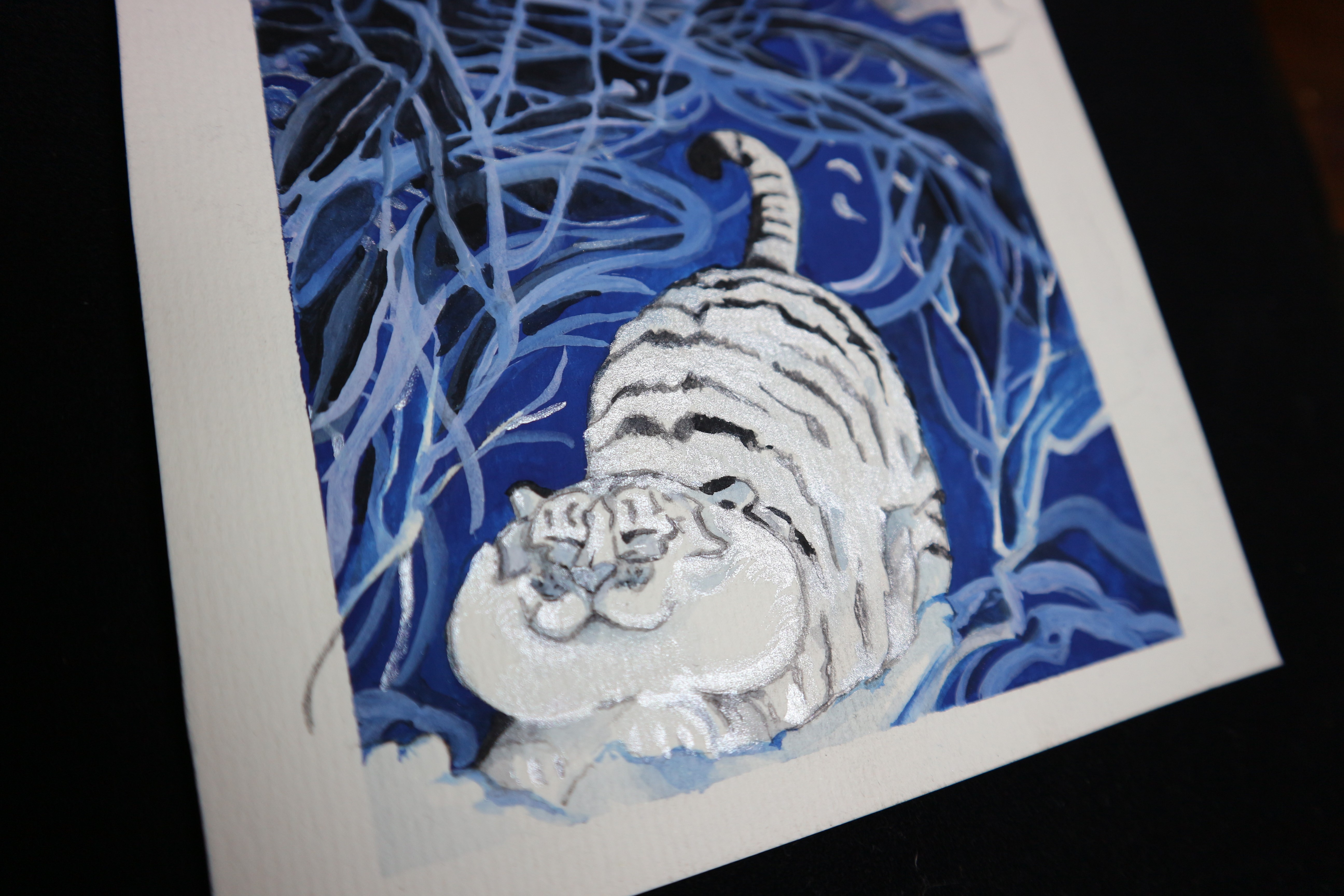 Металлики позволяют добавить контраста любой работе, особенно учитывая общую матовость соседствующей гуаши. Особую пикантность работам на светлой бумаге придаёт то, что эффект не всегда очевиден, но при определённом угле – неожиданно «вспыхивает», оживляя работу.