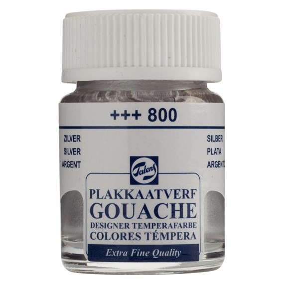 Частиц в такой гуаши - много. Так в бронзе, меди и золоте их видно невооружённым взглядом, в серебре включения более мелкого помола и краска больше похожа на кремообразную «сметанку».