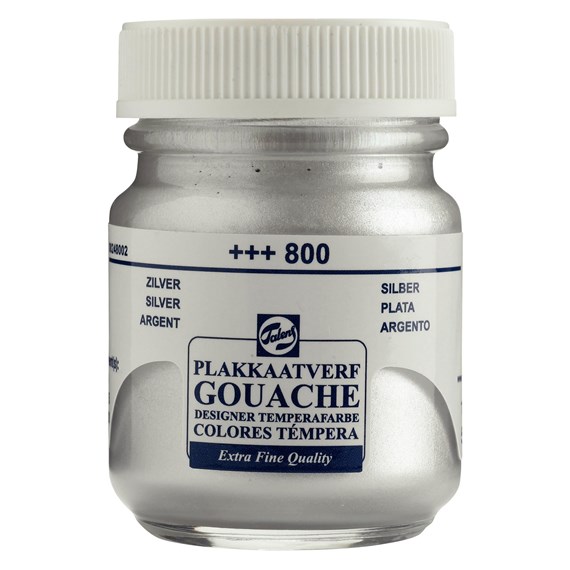 Частиц в такой гуаши - много. Так в бронзе, меди и золоте их видно невооружённым взглядом, в серебре включения более мелкого помола и краска больше похожа на кремообразную «сметанку».