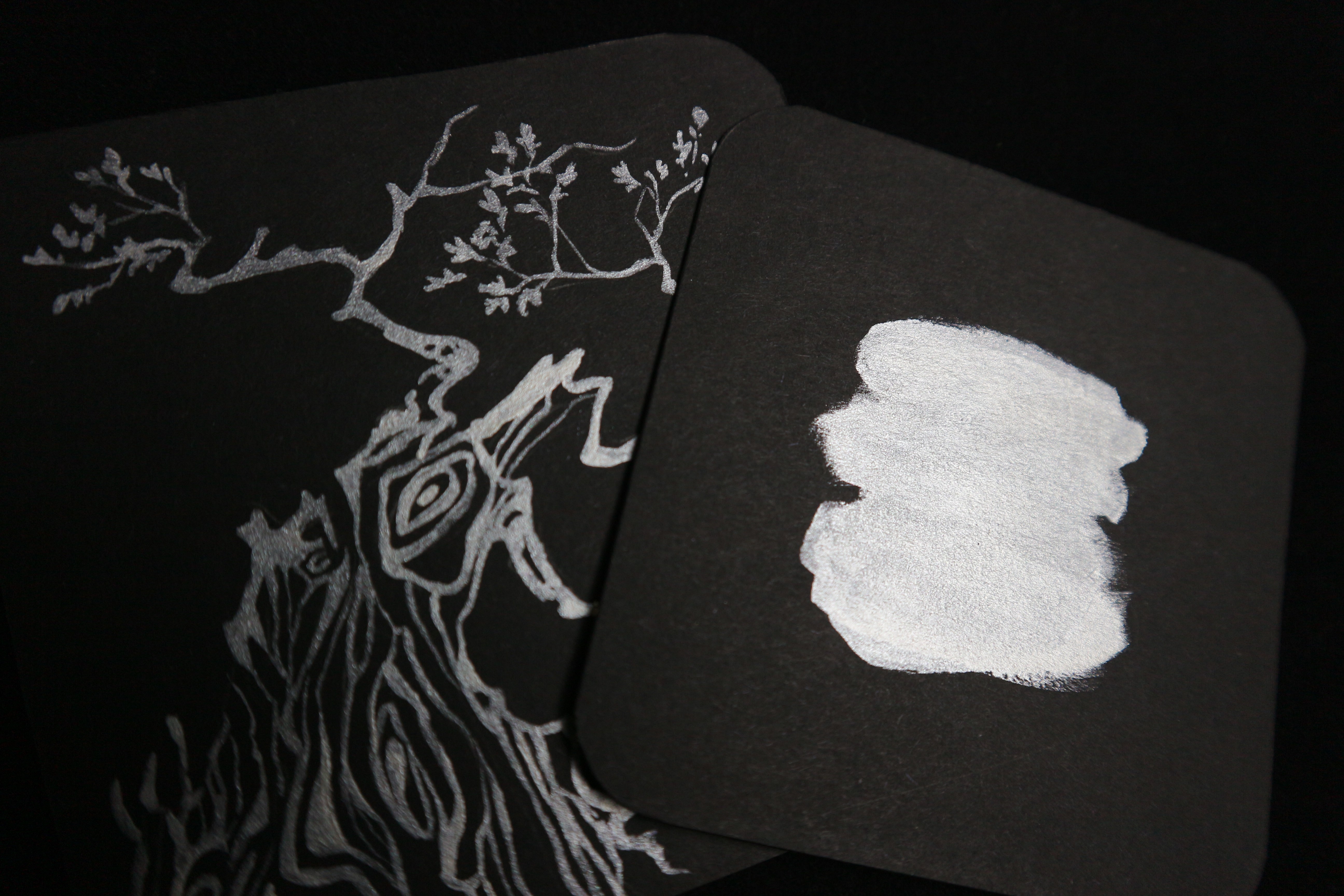 Металлики позволяют добавить контраста любой работе, особенно учитывая общую матовость соседствующей гуаши. Особую пикантность работам на светлой бумаге придаёт то, что эффект не всегда очевиден, но при определённом угле – неожиданно «вспыхивает», оживляя работу.