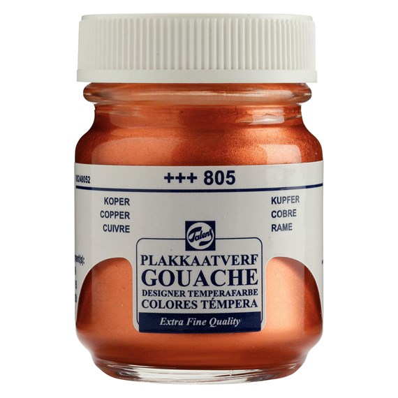 Частиц в такой гуаши - много. Так в бронзе, меди и золоте их видно невооружённым взглядом, в серебре включения более мелкого помола и краска больше похожа на кремообразную «сметанку».