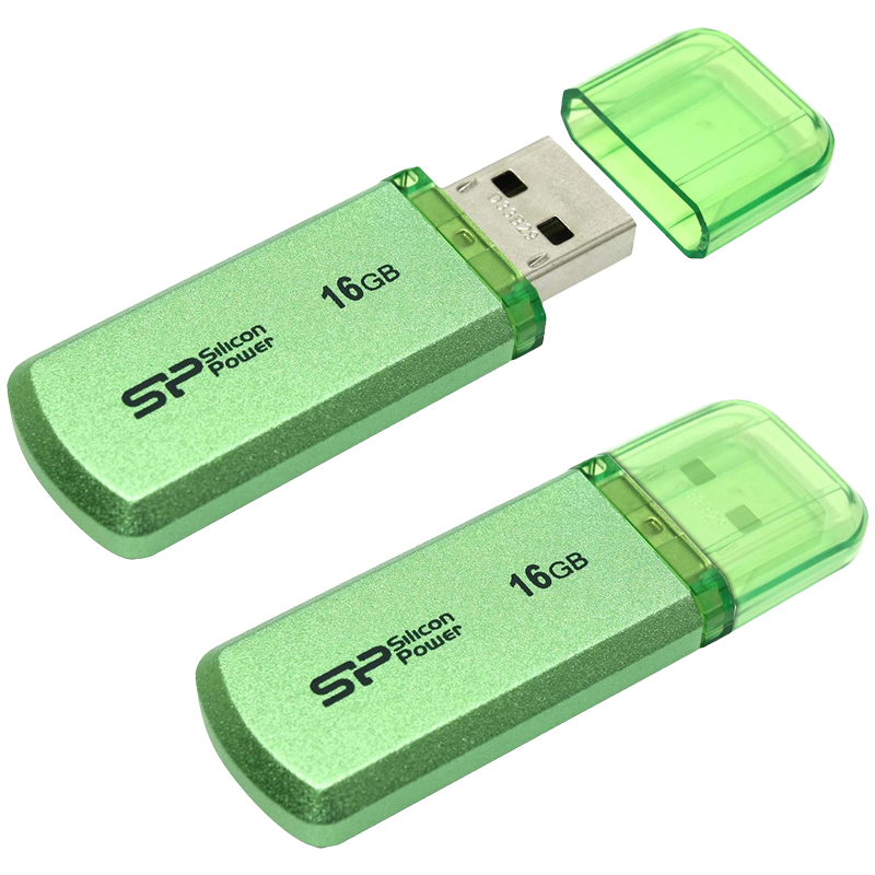 Память SiliconPower "Helios 101" 16GB, U2шт упак..0 Flash Drive, зеленый (металл.корпус)