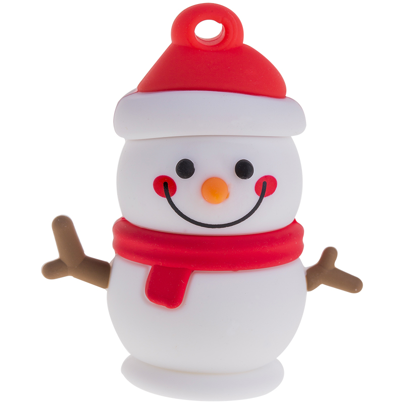 Память USB Flash представляет из себя флэш-накопитель в новогоднем стиле, сделанный в форме снеговика. Имеется специальное отверстие для того, чтобы надеть шнурок и носить ее всегда с собой.