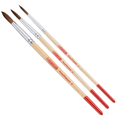Набор акварельных кистей, красный соболь/синтетика, 3 шт, круглые №4, 6, 8