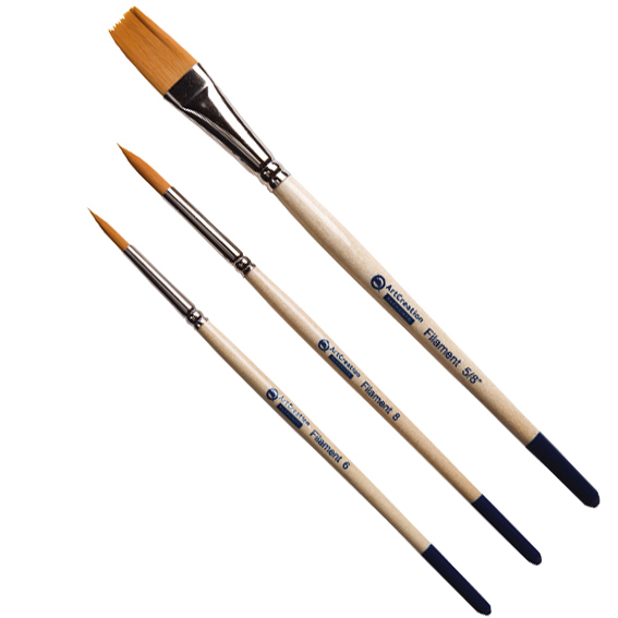 Набор акварельных кистей, синтетика, 3шт, широкая № 5/8", круглые № 6, 8