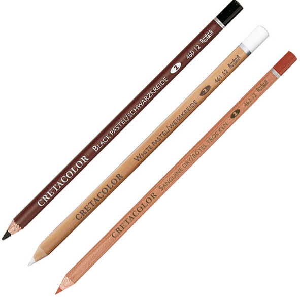 Набор художественных карандашей в блистере, содержит черный мел, сангина нежирная средняя, белый мел