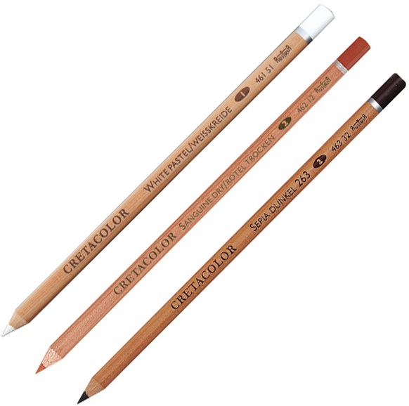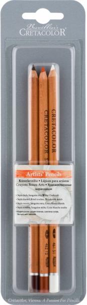 Набор художественных карандашей в блистере, состав: сепия сухая темная, сангина сухая, белый мел нежирный