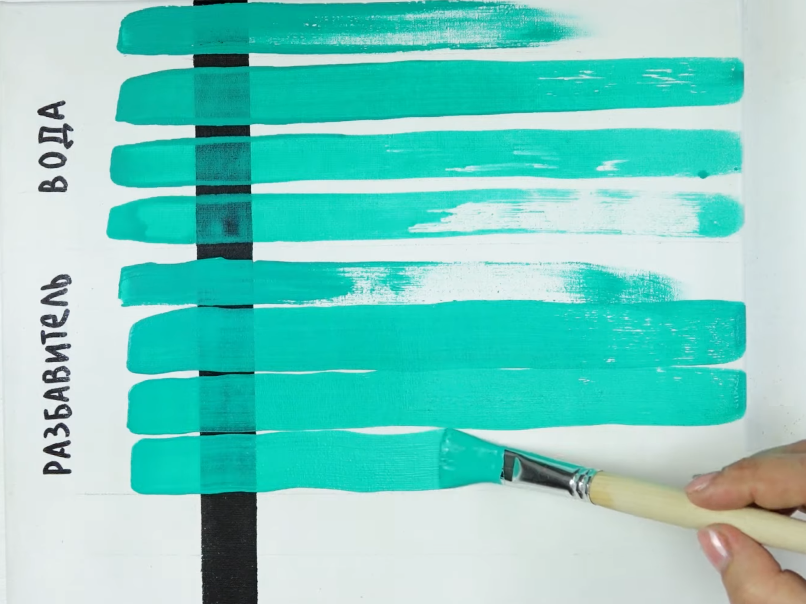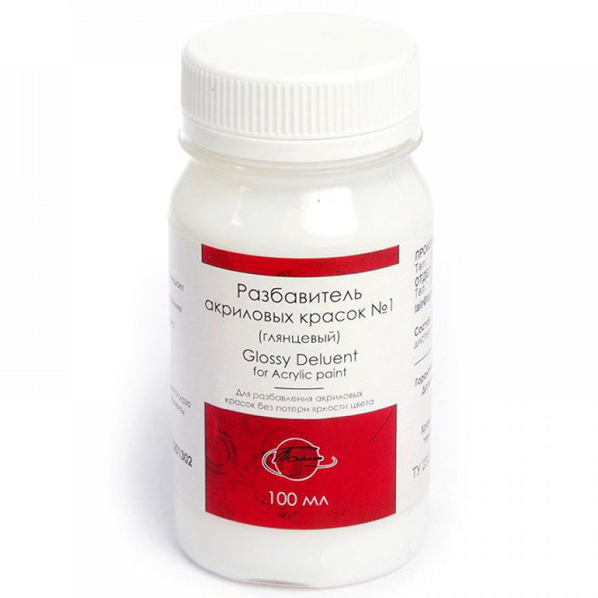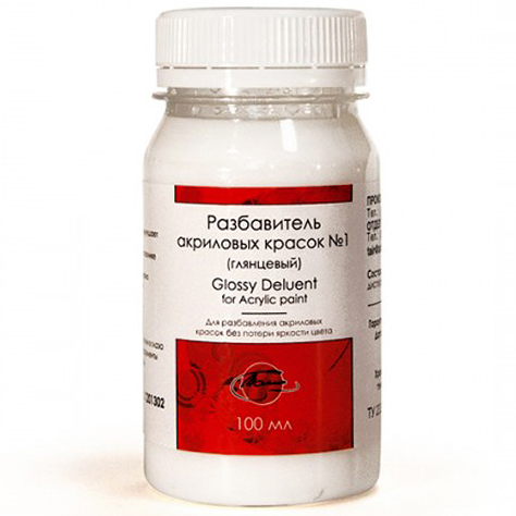 Разбавитель понижает вязкость густых акриловых красок, увеличивает их разносимость и блеск.