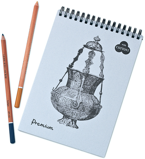 Блокнот на удобной пружине с 30 листами высококачественной пастельной бумаги. Бумага имеет с одной стороны тиснение "Холст".