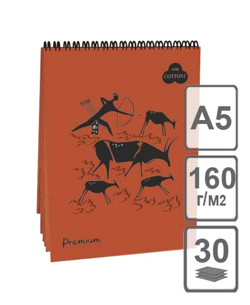 Блокнот на удобной пружине с 30 листами высококачественной пастельной бумаги. Бумага имеет с одной стороны тиснение ""Холст"".